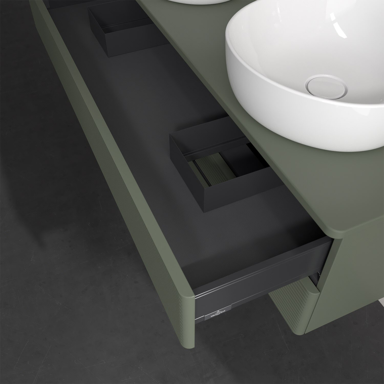 Villeroy & Boch Antao Waschbeckenunterschrank, 120 x 19 cm, 2 Auszüge, Fronten mit Struktur, ohne Hahnloch, für Waschtisch links und rechts