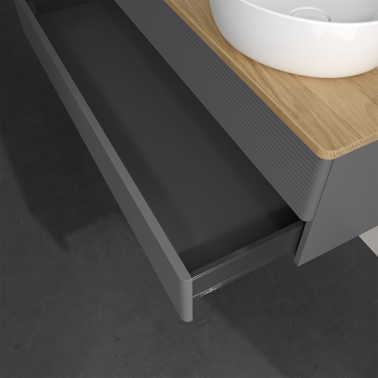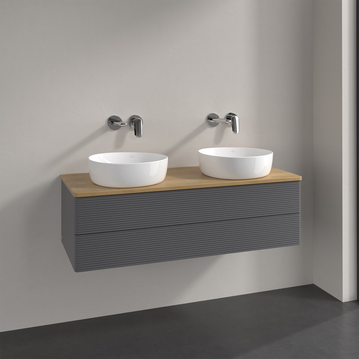 Villeroy & Boch Antao Waschbeckenunterschrank, 120 x 19 cm, 2 Auszüge, Fronten mit Struktur, ohne Hahnloch, für Waschtisch links und rechts