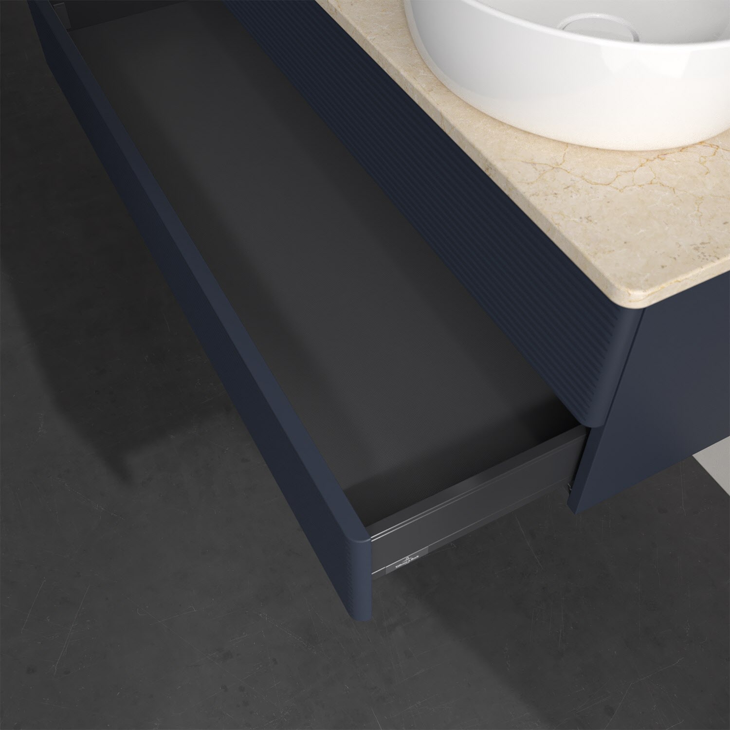 - kein Umfallen oder Verrutschen von Pflegeprodukten in den Schubladen dank rutschhemmendem Boden