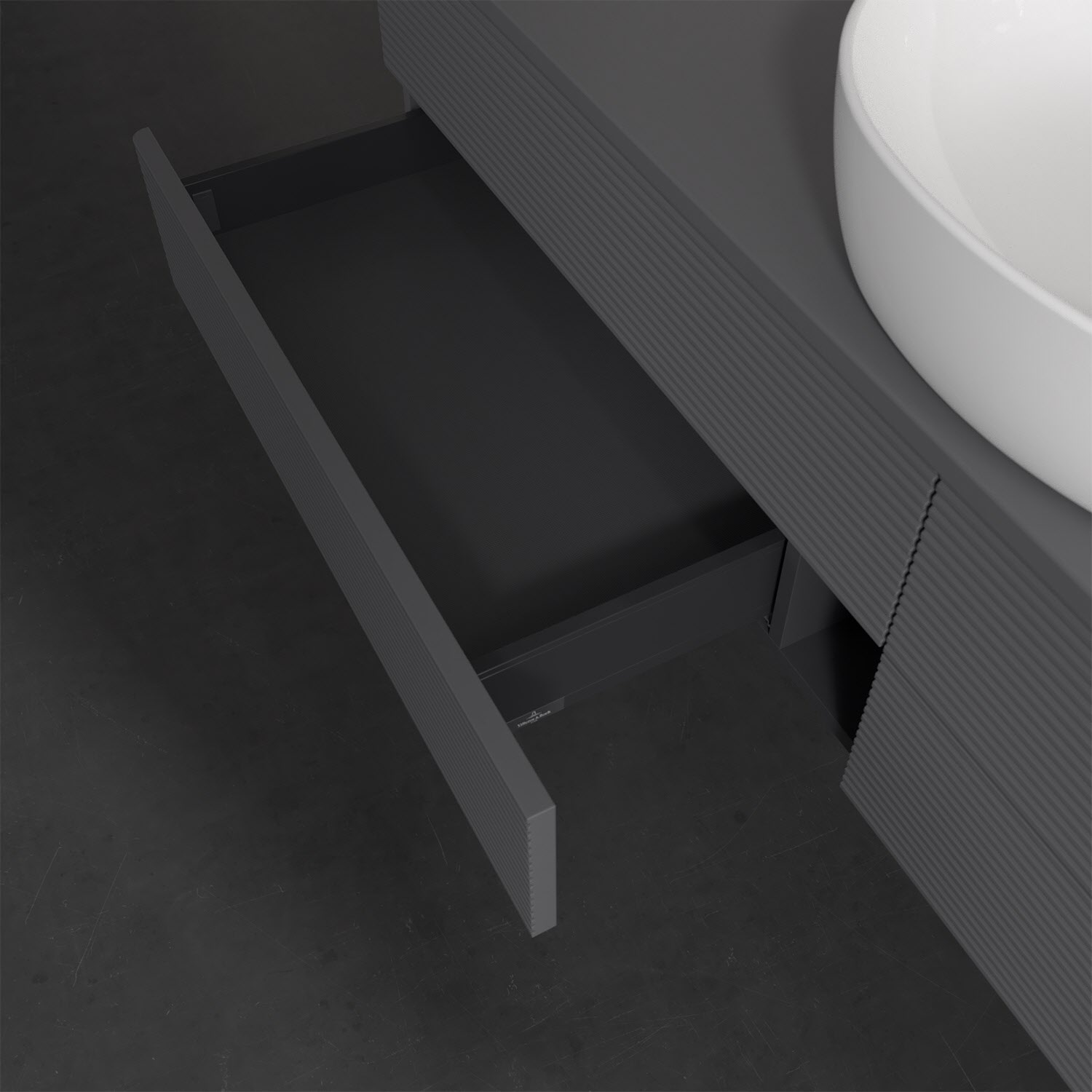 Villeroy & Boch Antao Waschbeckenunterschrank, 160 x 19 cm, 4 Auszüge, Fronten mit Struktur, ohne Hahnloch, für Waschtisch mittig