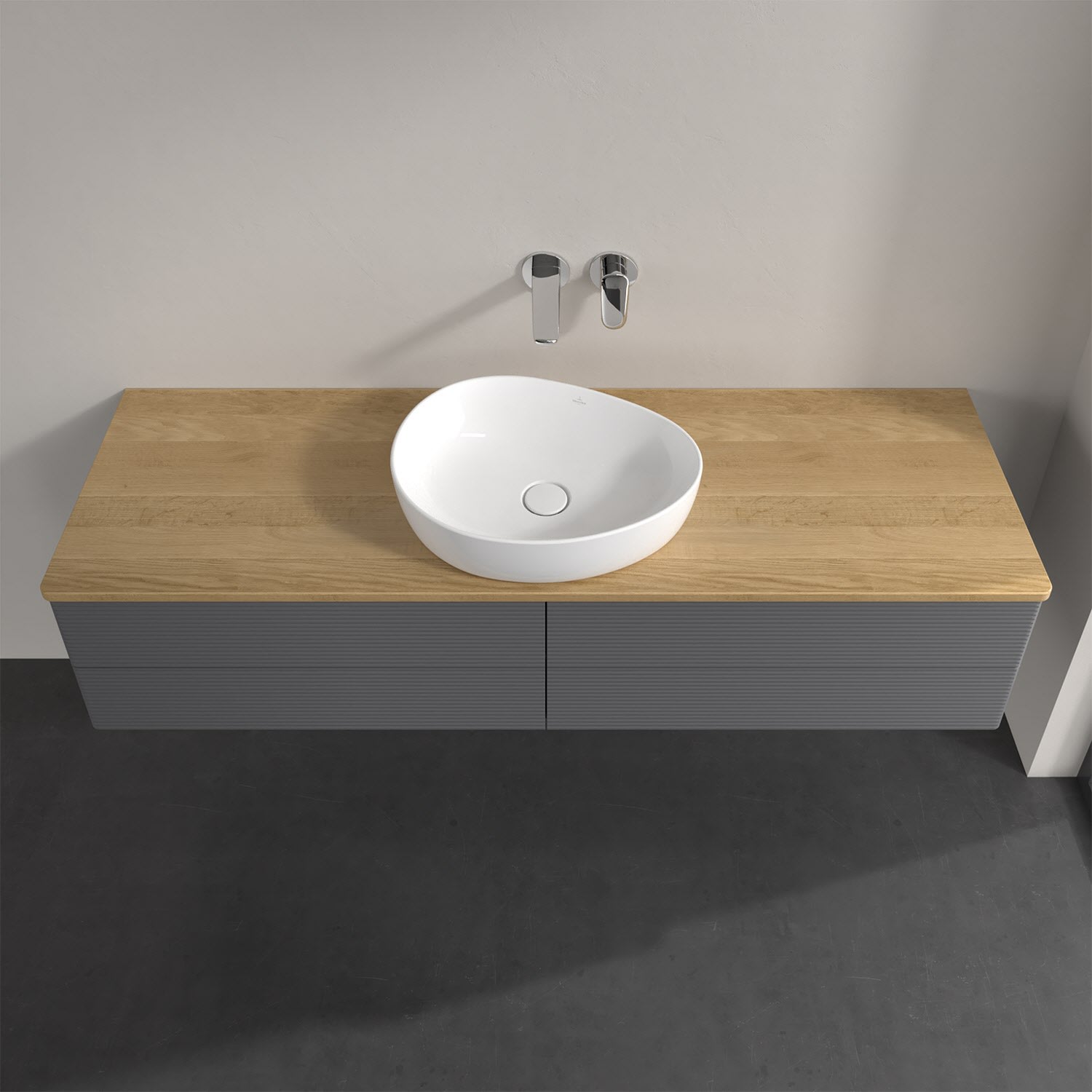 Villeroy & Boch Antao Waschbeckenunterschrank, 160 x 19 cm, 4 Auszüge, Fronten mit Struktur, ohne Hahnloch, für Waschtisch mittig