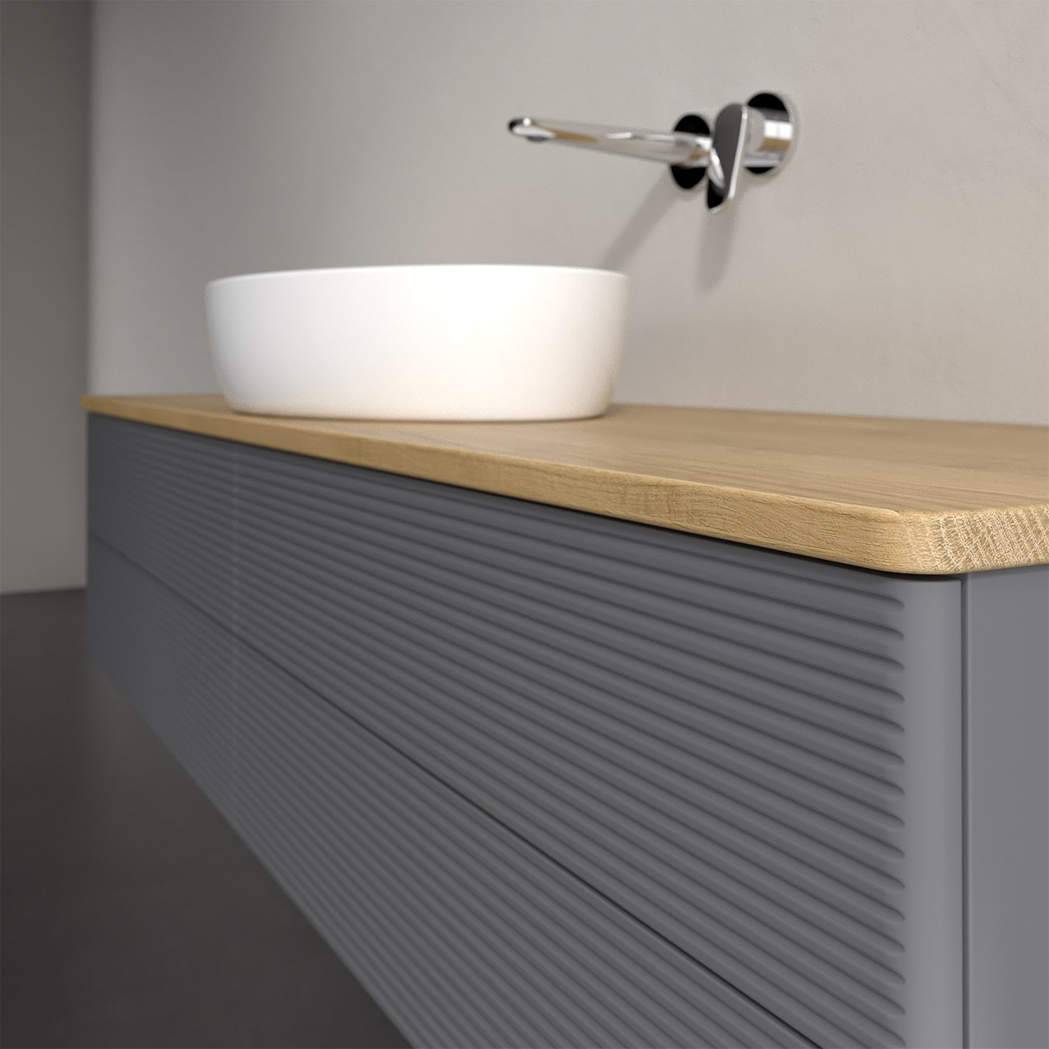 Der wandhängende Antao Waschtischunterschrank bietet mit seinen vier Auszügen und seiner erstaunlichen Größe viel Platz zum Verstauen von Utensilien im Badezimmer. Dank des mittig platzierten Aufsatzwaschtischs gibt es seitlich weiteren Platz für Handtücher, Seifenspender & Co. auf der Waschtischplatte. Inspiriert von der Natur überzeugt der Unterschrank auch optisch mit sanfter Formsprache und abgerundete Kanten. Die grifflosen Auszüge mit strukturierter Front sind mit der Push-to-Open Funktion ausgestattet und verfügen über einen Antirutschboden, damit Utensilien sicher verstaut werden können. Mit seiner Vollauszug- und Selbsteinzug-Funktion ist der Schrank praktisch und leicht zu bedienen. Qualität von Villeroy & Boch! Für eine besonders leichte Pflege sorgt die mehrschichtig deckend lackierte Oberfläche. Bei der Ausführung in Massivholz wird dank des verarbeiteten Massivholzes jedes Möbel zu einem Unikat, das sich durch das lebendige Naturmaterial durch seine einzigartige Struktur und Maserung auszeichnet.