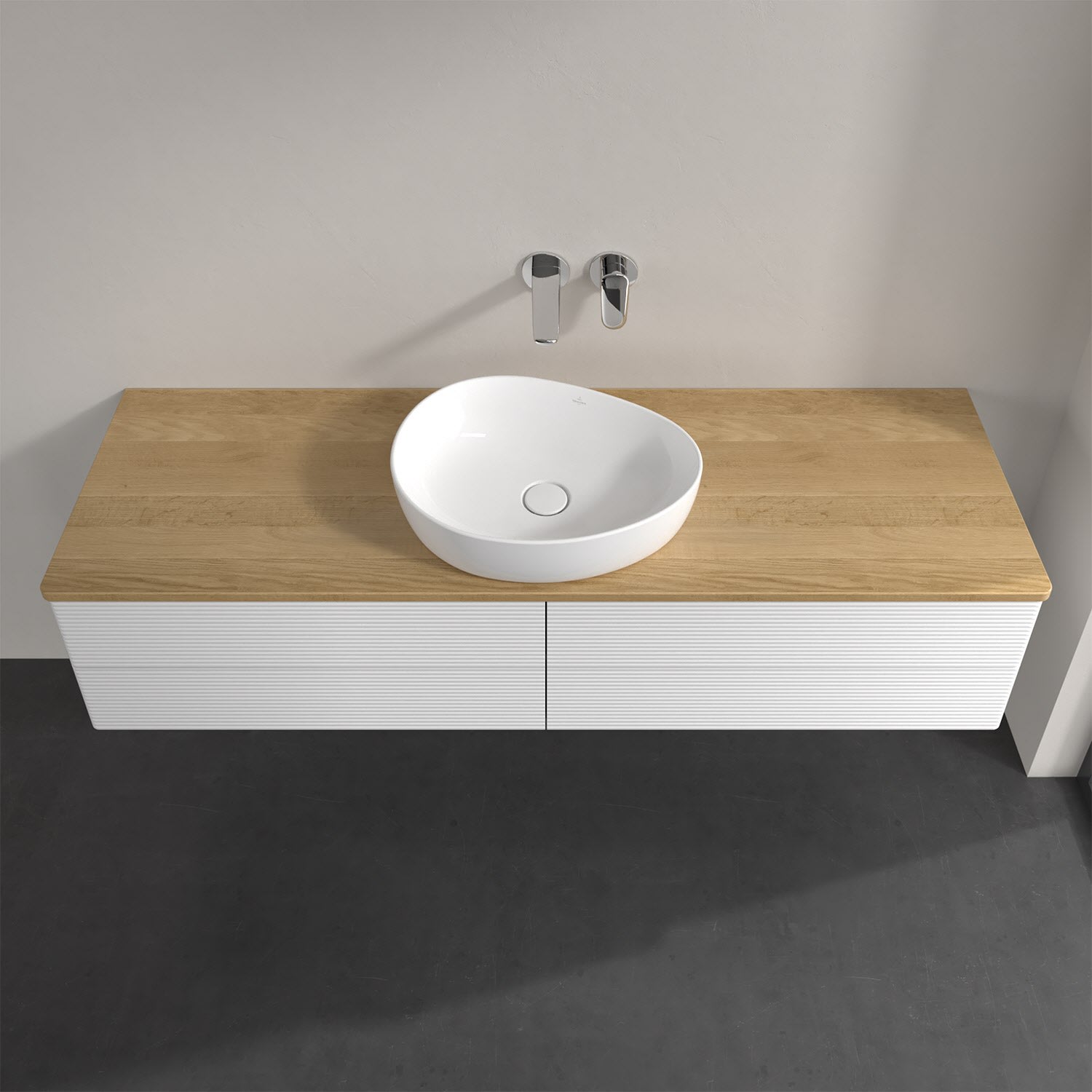 Villeroy & Boch Antao Waschbeckenunterschrank, 160 x 19 cm, 4 Auszüge, Fronten mit Struktur, ohne Hahnloch, für Waschtisch mittig