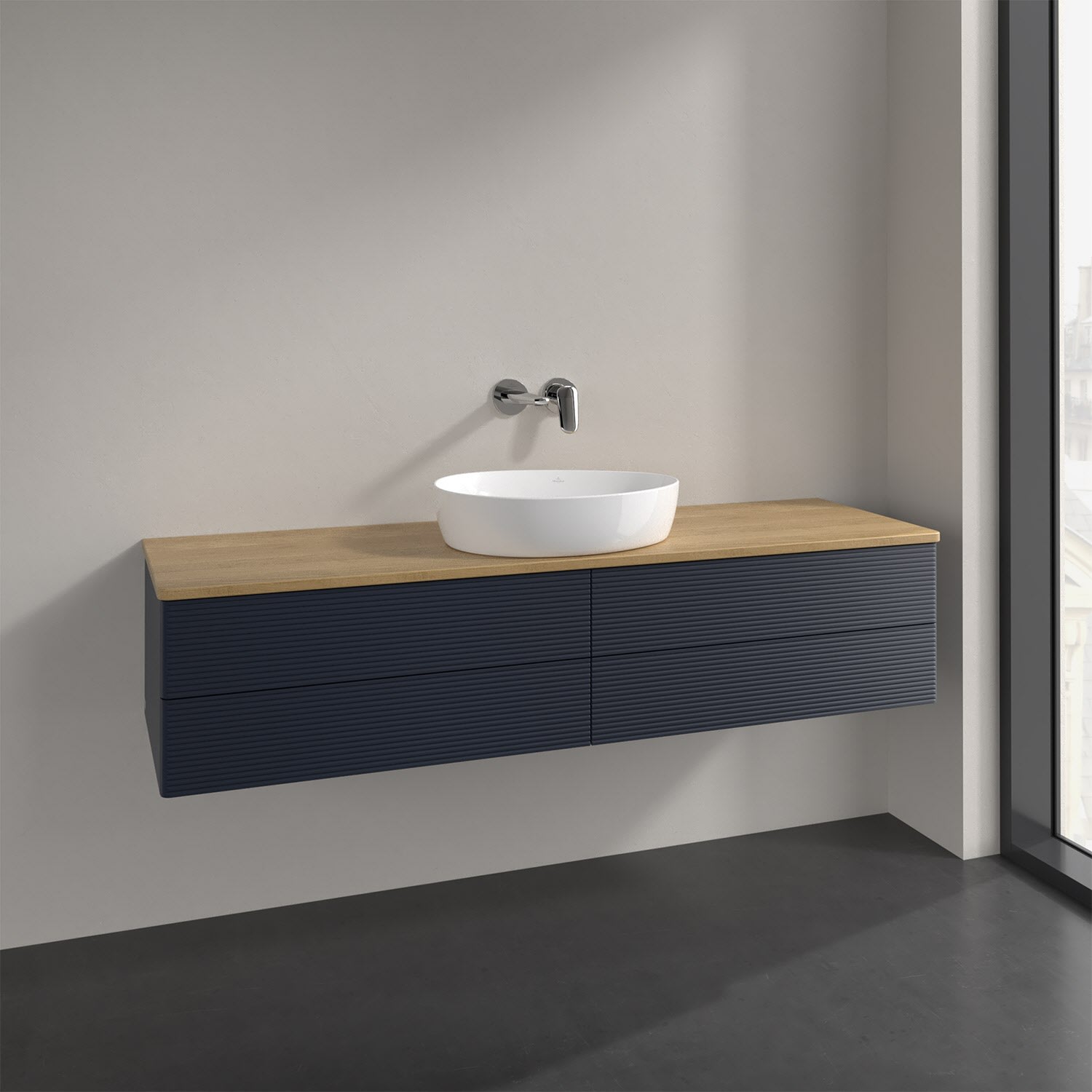 Villeroy & Boch Antao Waschbeckenunterschrank, 160 x 19 cm, 4 Auszüge, Fronten mit Struktur, ohne Hahnloch, für Waschtisch mittig
