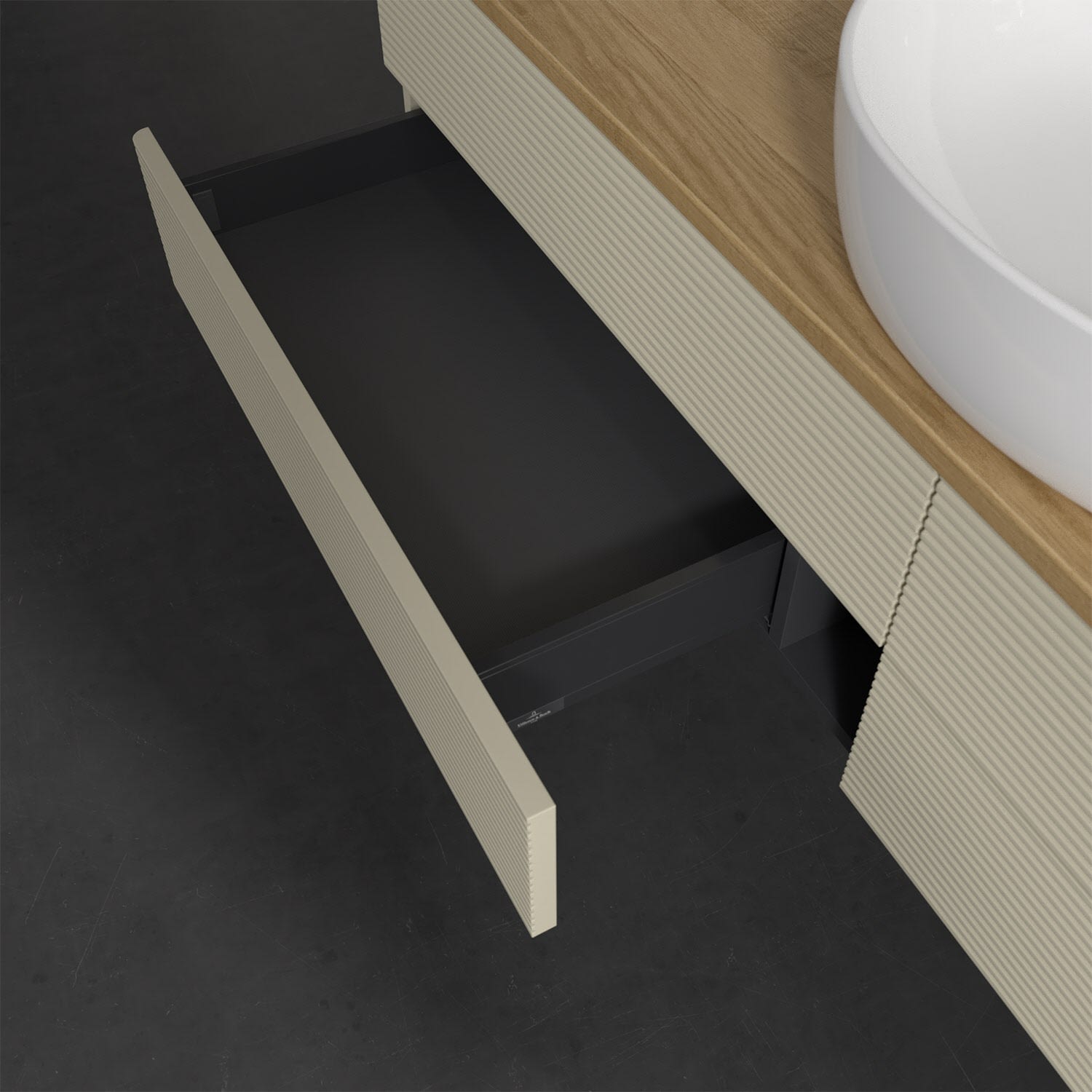 Villeroy & Boch Antao Waschbeckenunterschrank, 160 x 19 cm, 4 Auszüge, Fronten mit Struktur, ohne Hahnloch, für Waschtisch mittig