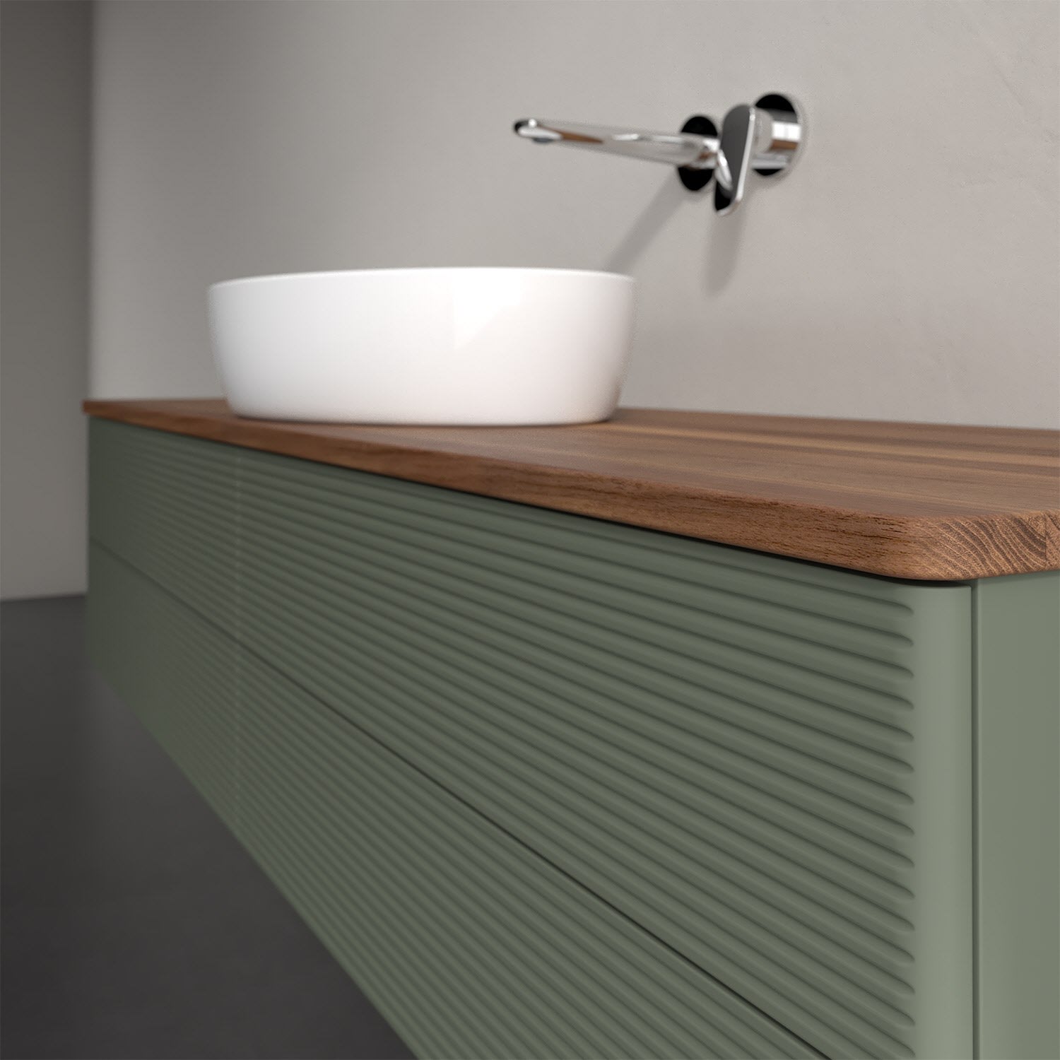 Der wandhängende Antao Waschtischunterschrank bietet mit seinen vier Auszügen und seiner erstaunlichen Größe viel Platz zum Verstauen von Utensilien im Badezimmer. Dank des mittig platzierten Aufsatzwaschtischs gibt es seitlich weiteren Platz für Handtücher, Seifenspender & Co. auf der Waschtischplatte. Inspiriert von der Natur überzeugt der Unterschrank auch optisch mit sanfter Formsprache und abgerundete Kanten. Die grifflosen Auszüge mit strukturierter Front sind mit der Push-to-Open Funktion ausgestattet und verfügen über einen Antirutschboden, damit Utensilien sicher verstaut werden können. Mit seiner Vollauszug- und Selbsteinzug-Funktion ist der Schrank praktisch und leicht zu bedienen. Qualität von Villeroy & Boch! Für eine besonders leichte Pflege sorgt die mehrschichtig deckend lackierte Oberfläche. Bei der Ausführung in Massivholz wird dank des verarbeiteten Massivholzes jedes Möbel zu einem Unikat, das sich durch das lebendige Naturmaterial durch seine einzigartige Struktur und Maserung auszeichnet.