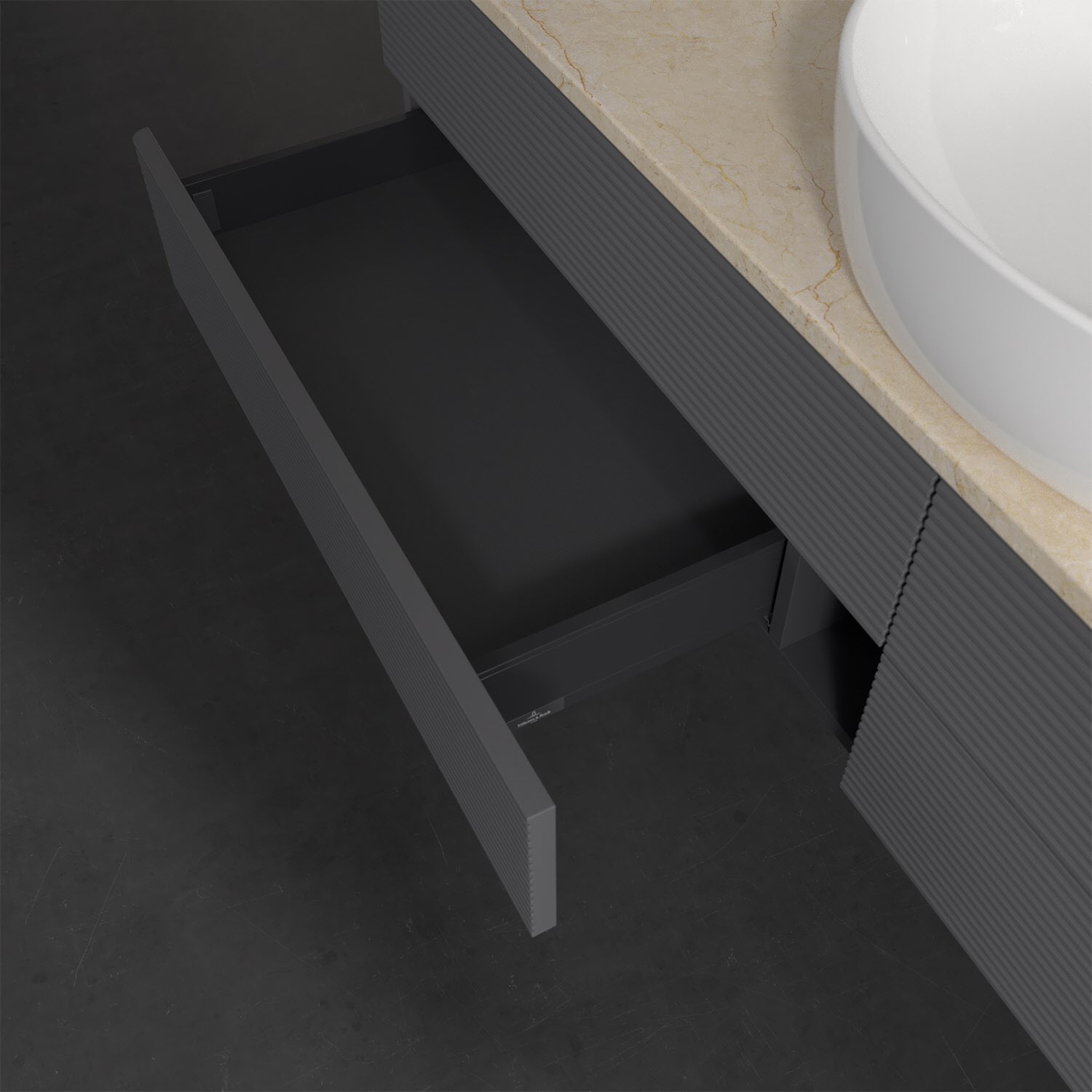 Villeroy & Boch Antao Waschbeckenunterschrank, 160 x 19 cm, 4 Auszüge, Fronten mit Struktur, ohne Hahnloch, für Waschtisch mittig