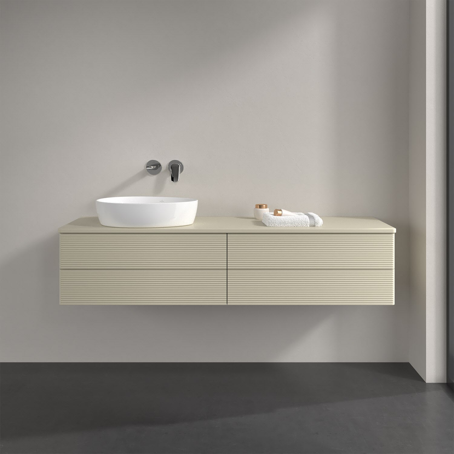 Villeroy & Boch Antao Waschbeckenunterschrank, 160 x 19 cm, 4 Auszüge, Fronten mit Struktur, ohne Hahnloch, für Waschtisch links