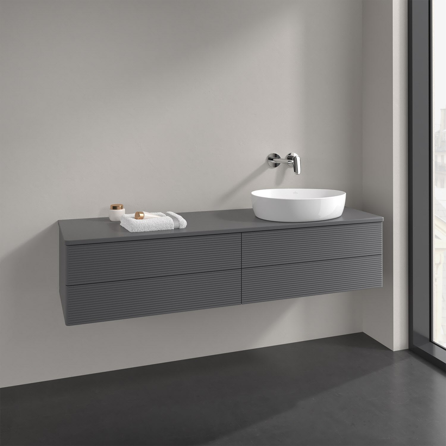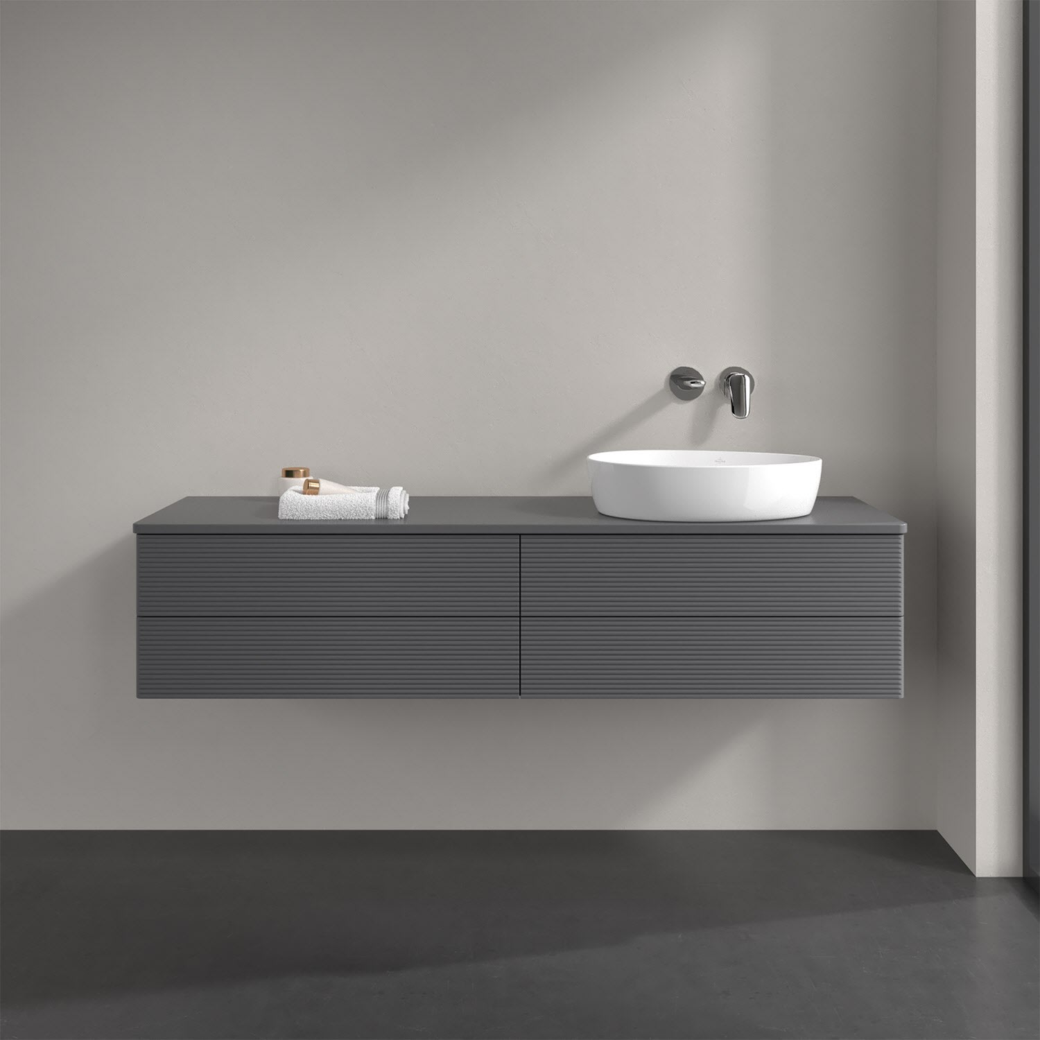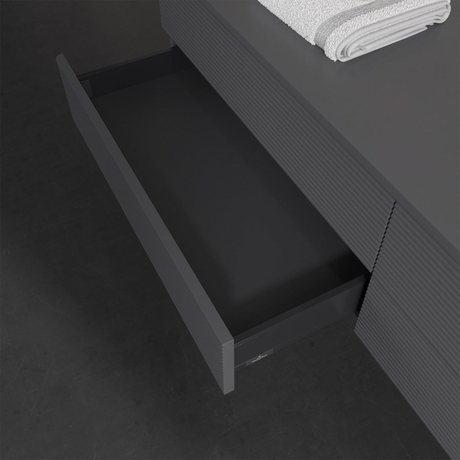 Villeroy & Boch Antao Waschbeckenunterschrank, 160 x 19 cm, 4 Auszüge, Fronten mit Struktur, ohne Hahnloch, für Waschtisch rechts