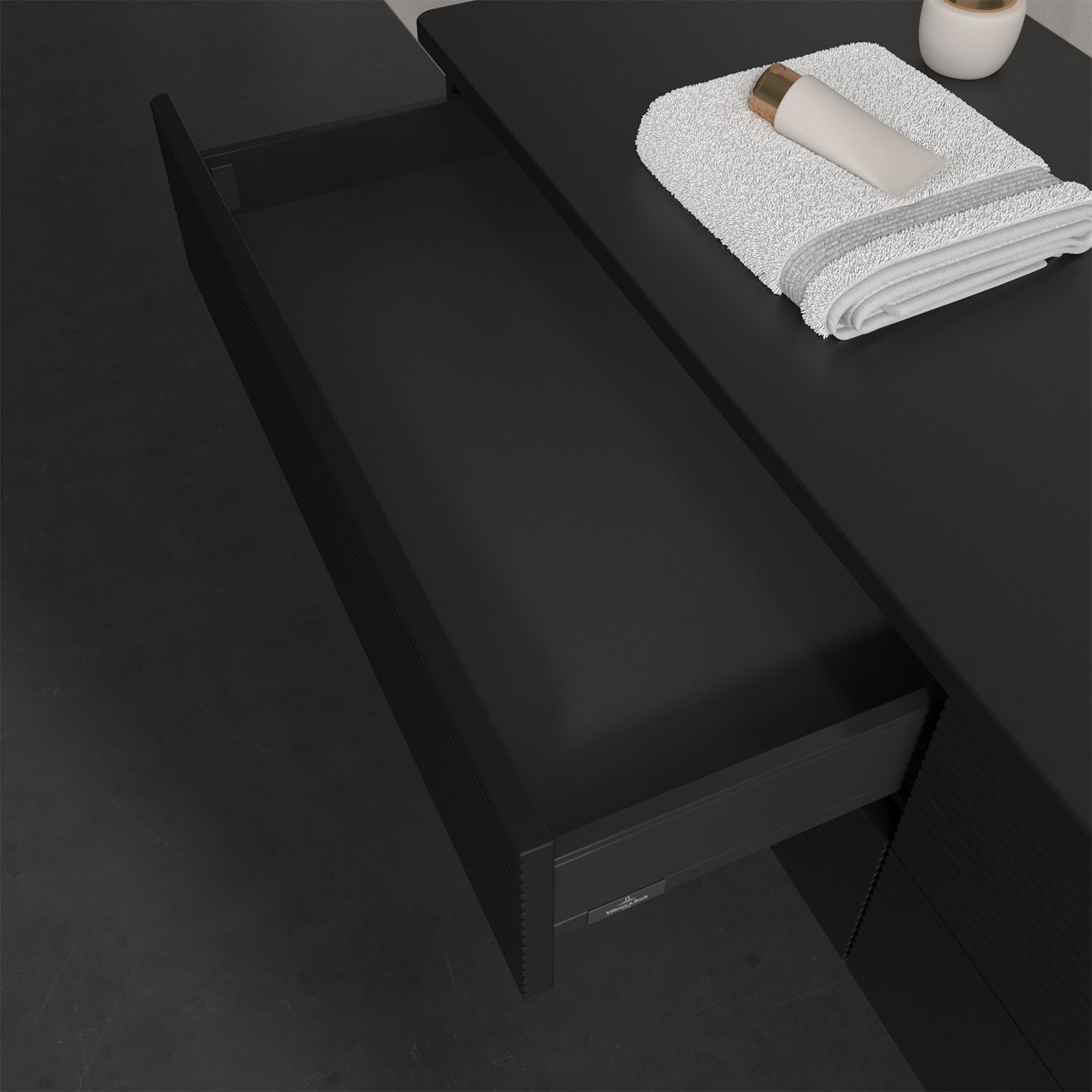 Villeroy & Boch Antao Waschbeckenunterschrank, 160 x 19 cm, 4 Auszüge, Fronten mit Struktur, ohne Hahnloch, für Waschtisch rechts