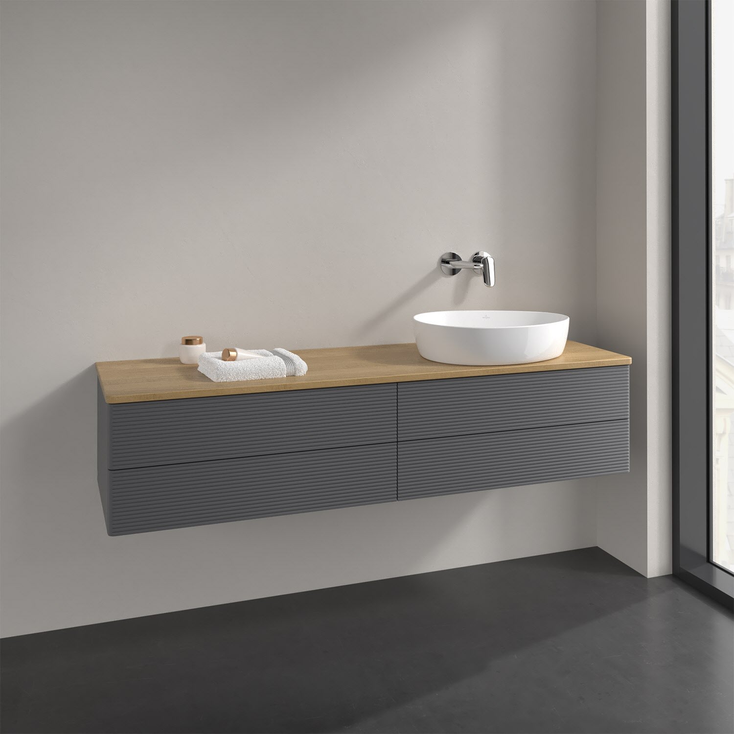 Villeroy & Boch Antao Waschbeckenunterschrank, 160 x 19 cm, 4 Auszüge, Fronten mit Struktur, ohne Hahnloch, für Waschtisch rechts