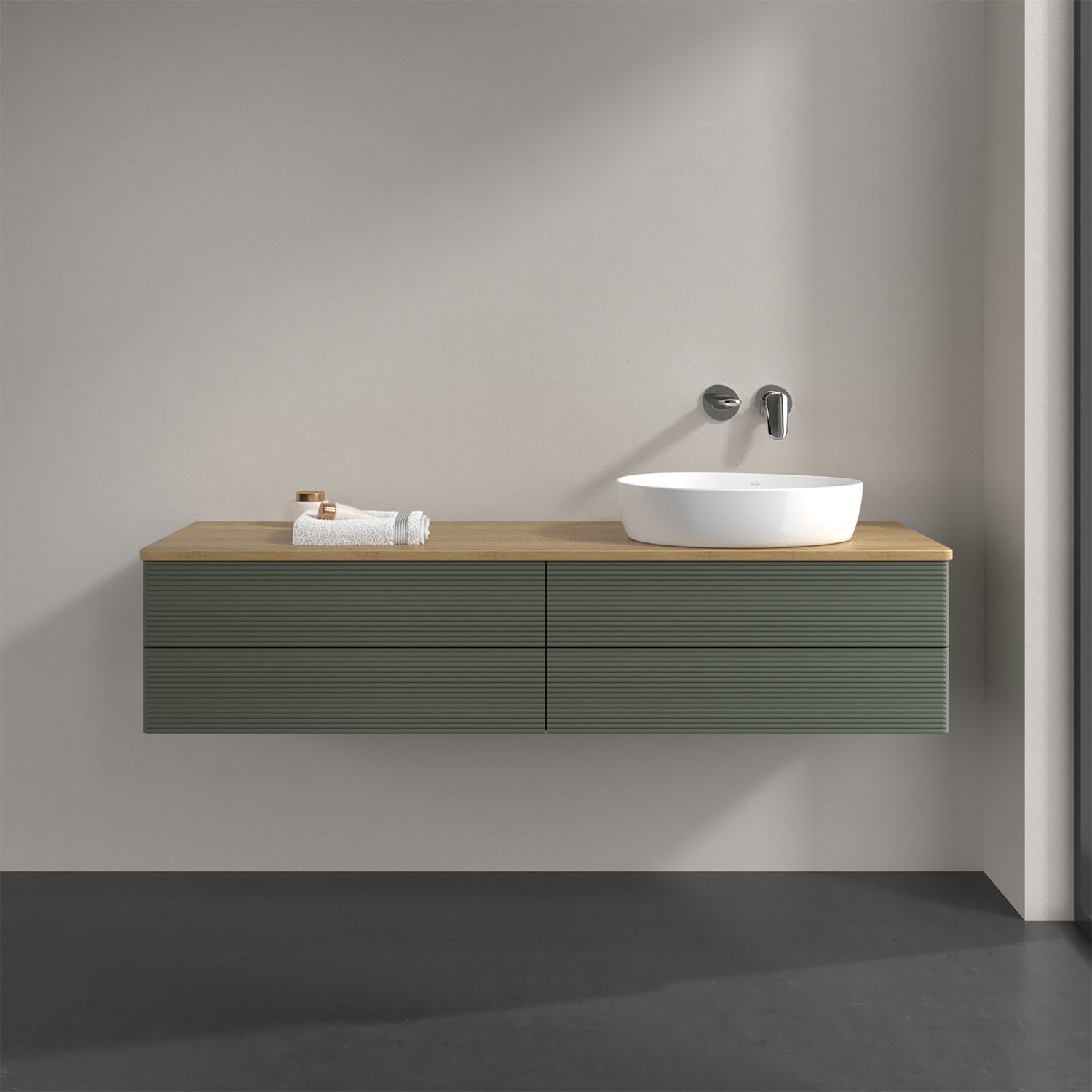Villeroy & Boch Antao Waschbeckenunterschrank, 160 x 19 cm, 4 Auszüge, Fronten mit Struktur, ohne Hahnloch, für Waschtisch rechts