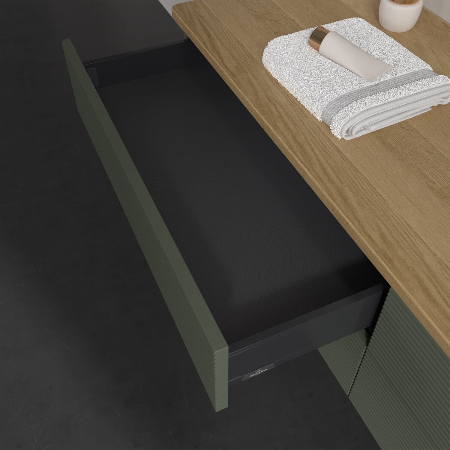 - kein Umfallen oder Verrutschen von Pflegeprodukten in den Schubladen dank rutschhemmendem Boden