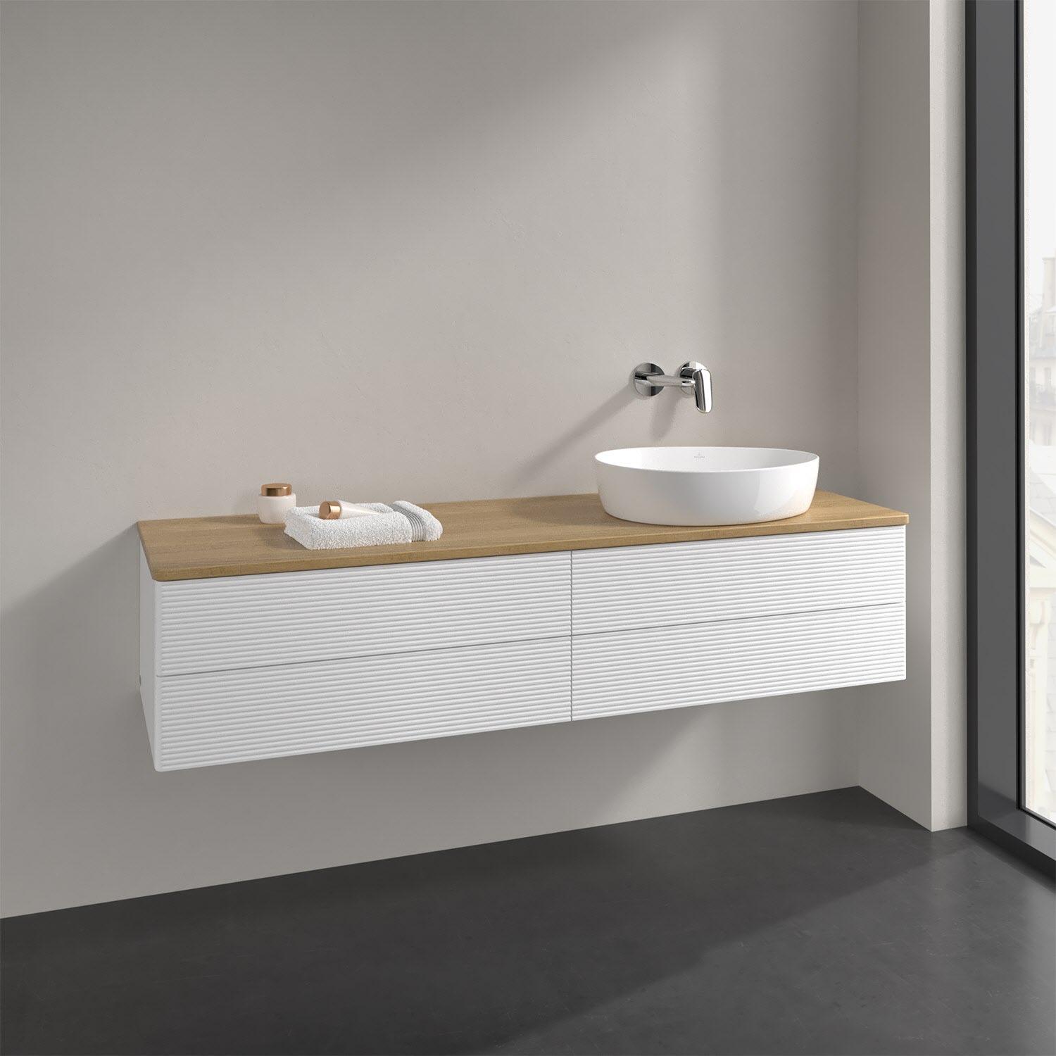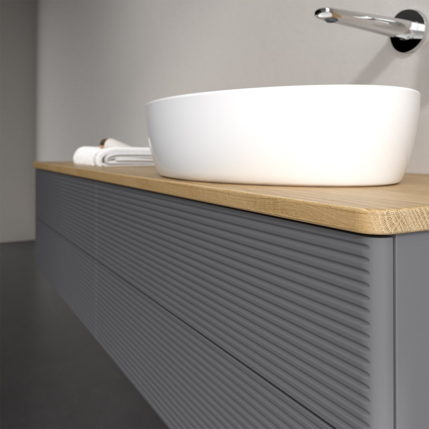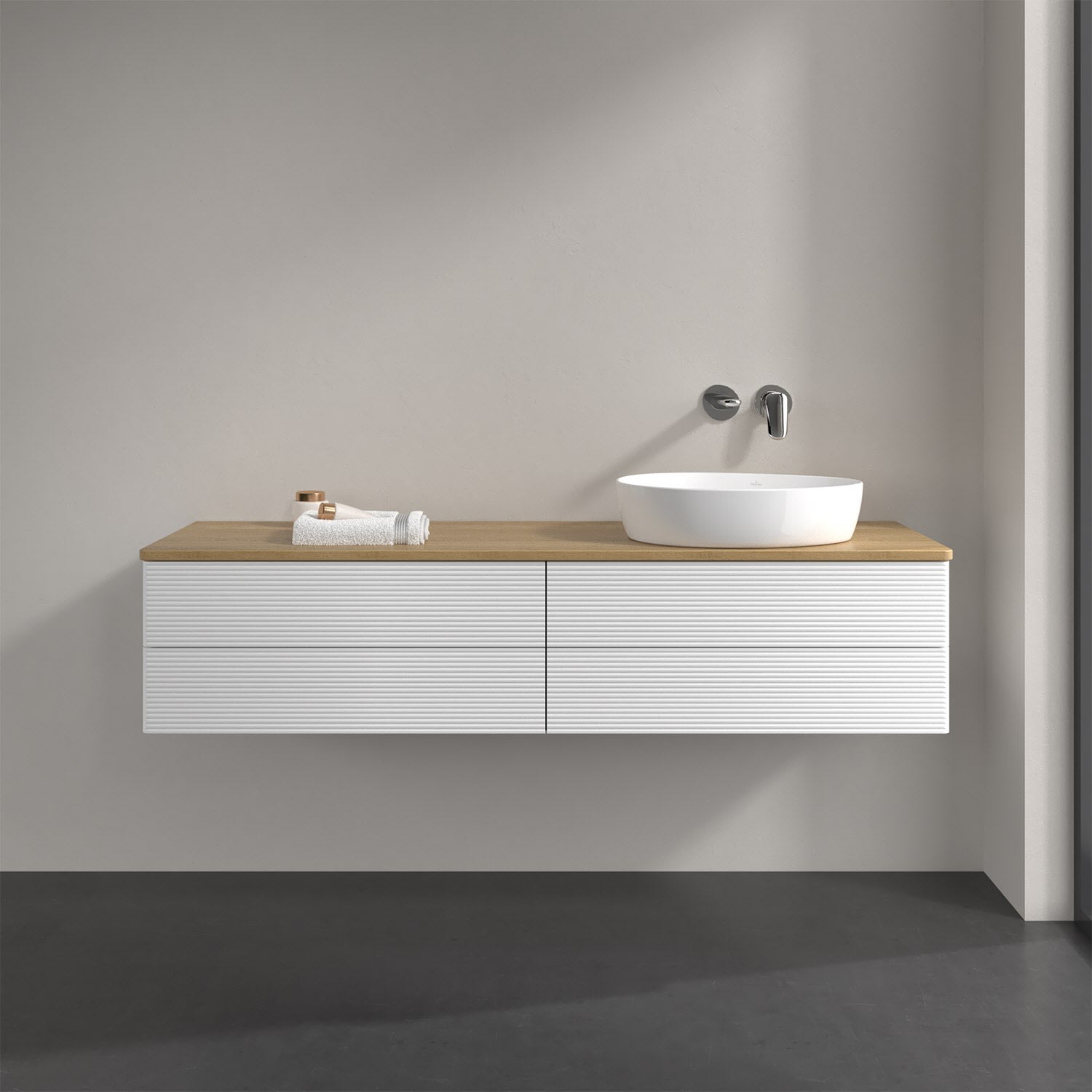 Villeroy & Boch Antao Waschbeckenunterschrank, 160 x 19 cm, 4 Auszüge, Fronten mit Struktur, ohne Hahnloch, für Waschtisch rechts