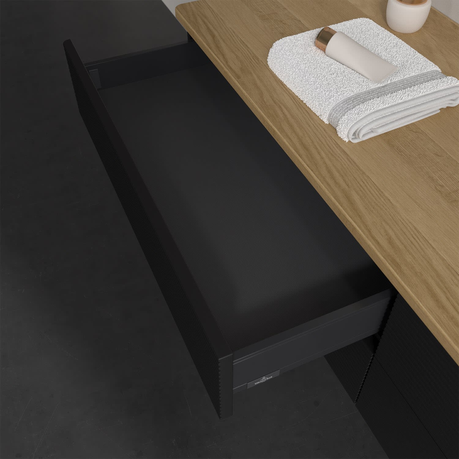 Villeroy & Boch Antao Waschbeckenunterschrank, 160 x 19 cm, 4 Auszüge, Fronten mit Struktur, ohne Hahnloch, für Waschtisch rechts