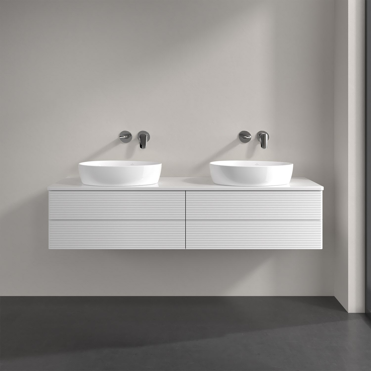 Villeroy & Boch Antao Waschbeckenunterschrank, 160 x 19 cm, 4 Auszüge, Fronten mit Struktur, ohne Hahnloch, für Waschtisch links und rechts