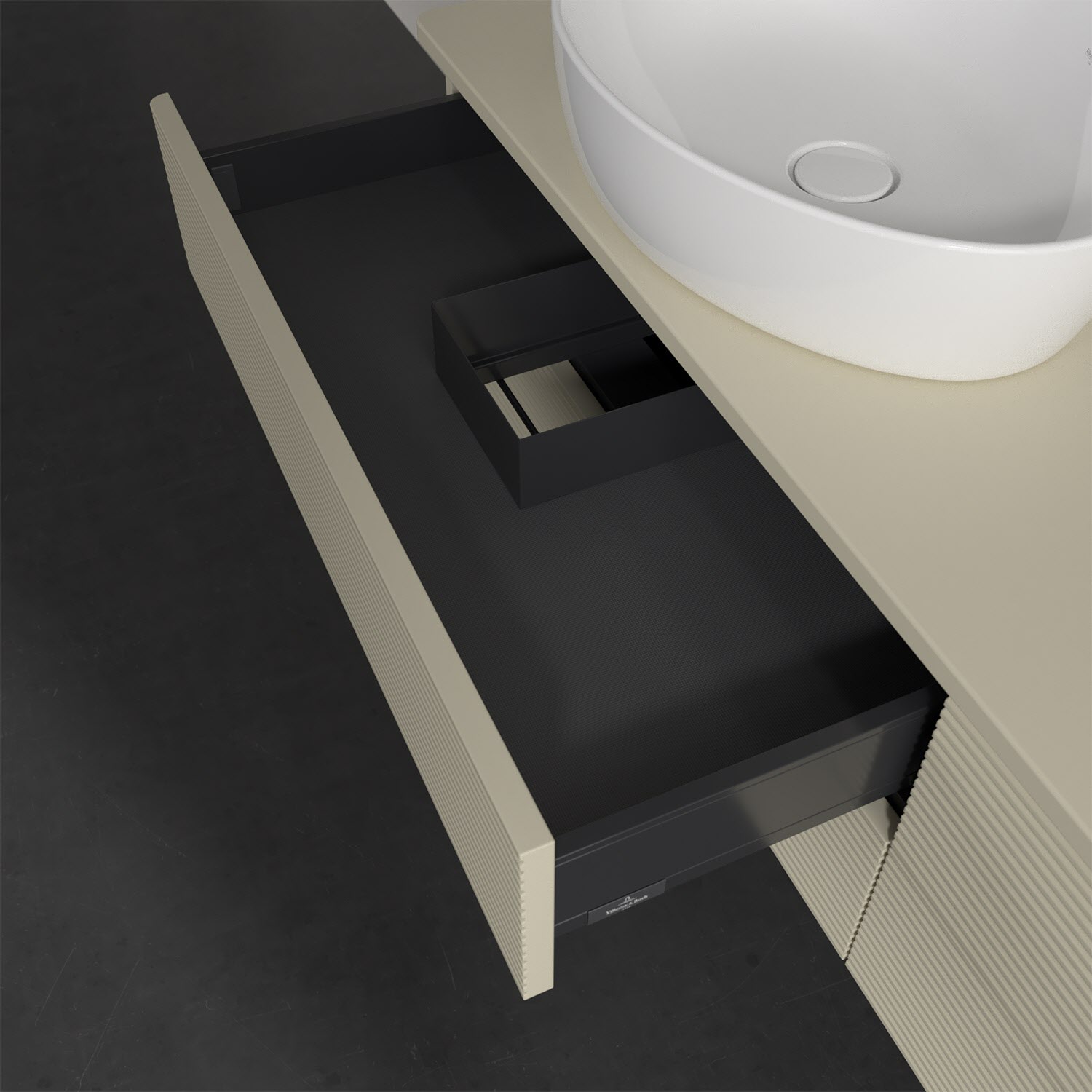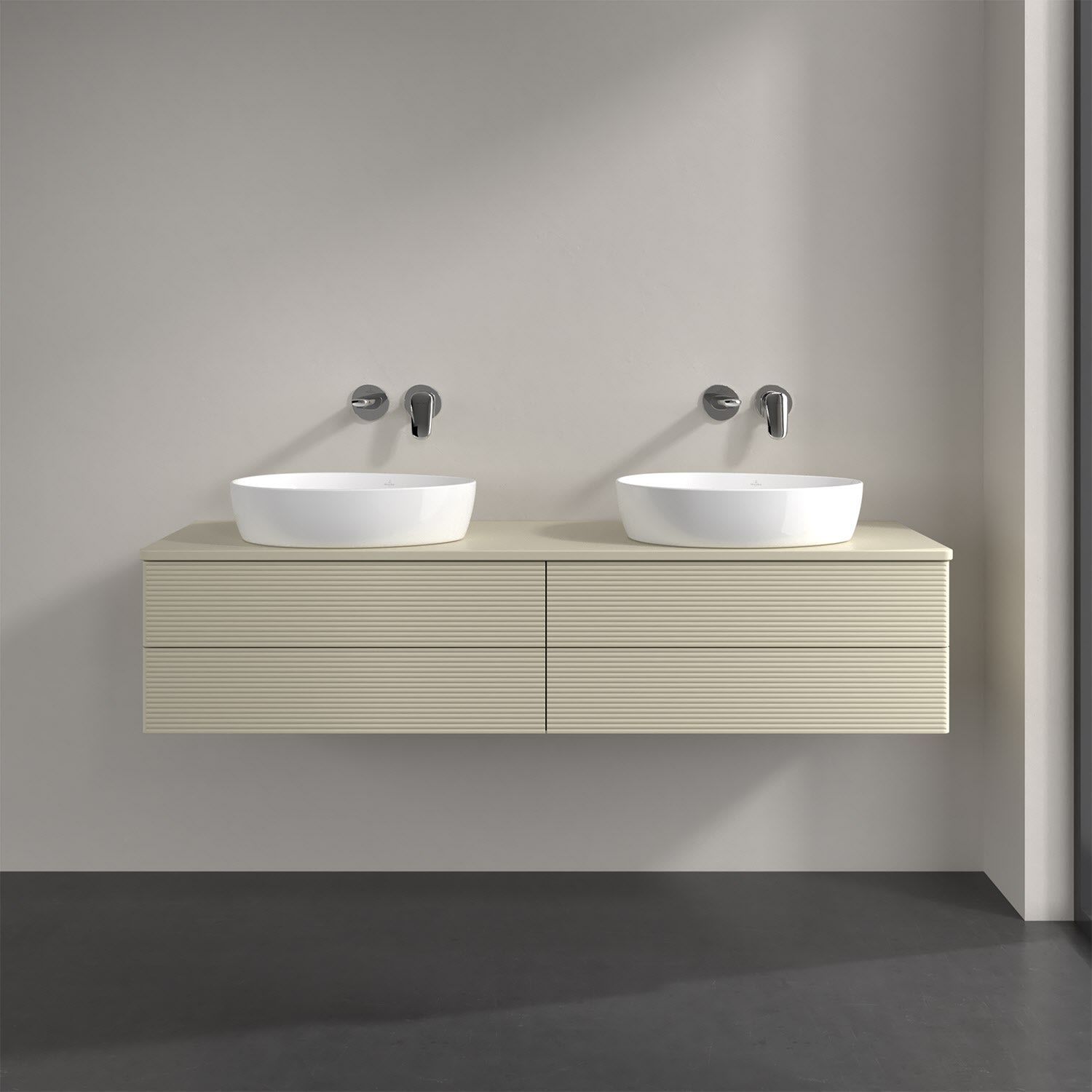 Villeroy & Boch Antao Waschbeckenunterschrank, 160 x 19 cm, 4 Auszüge, Fronten mit Struktur, ohne Hahnloch, für Waschtisch links und rechts
