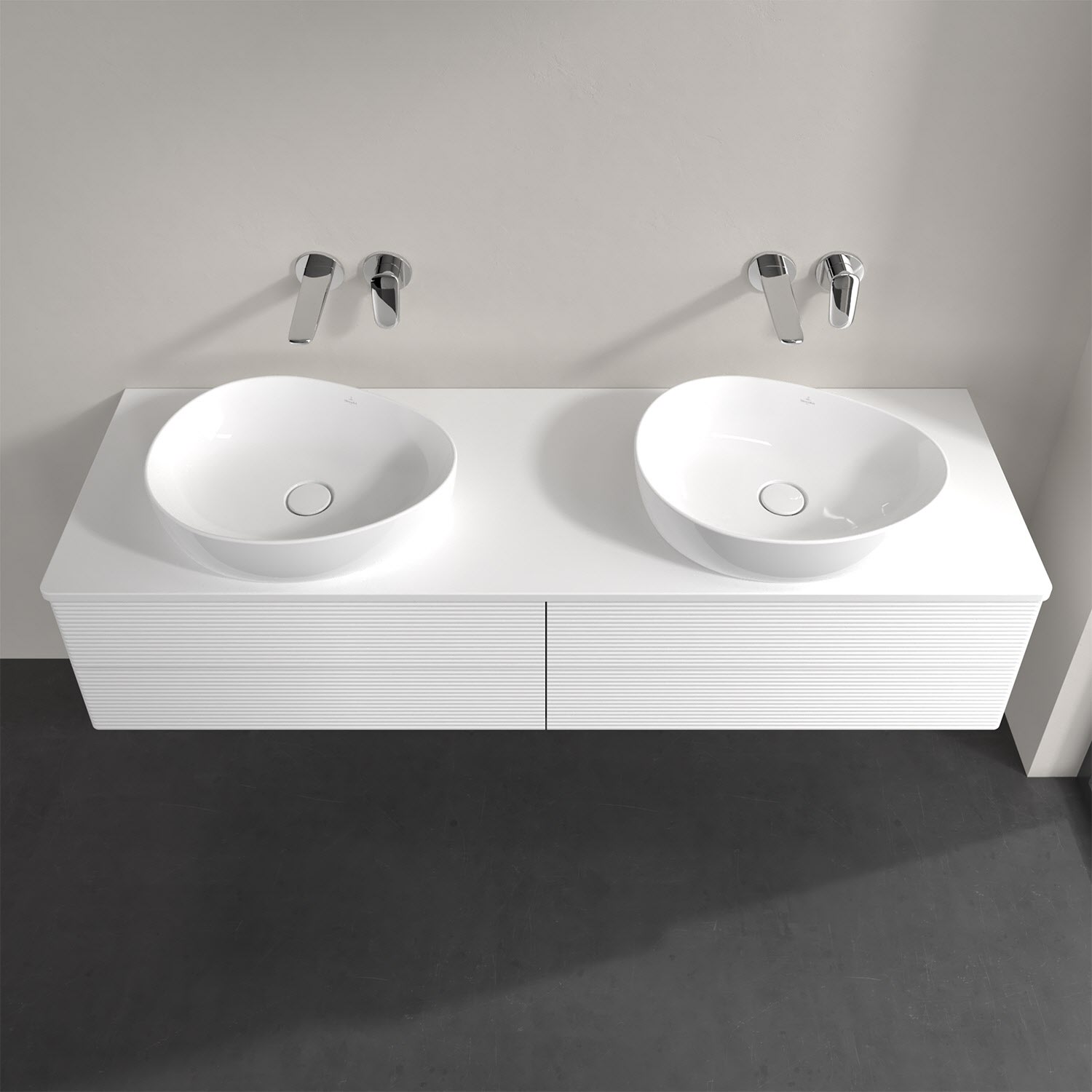 Villeroy & Boch Antao Waschbeckenunterschrank, 160 x 19 cm, 4 Auszüge, Fronten mit Struktur, ohne Hahnloch, für Waschtisch links und rechts