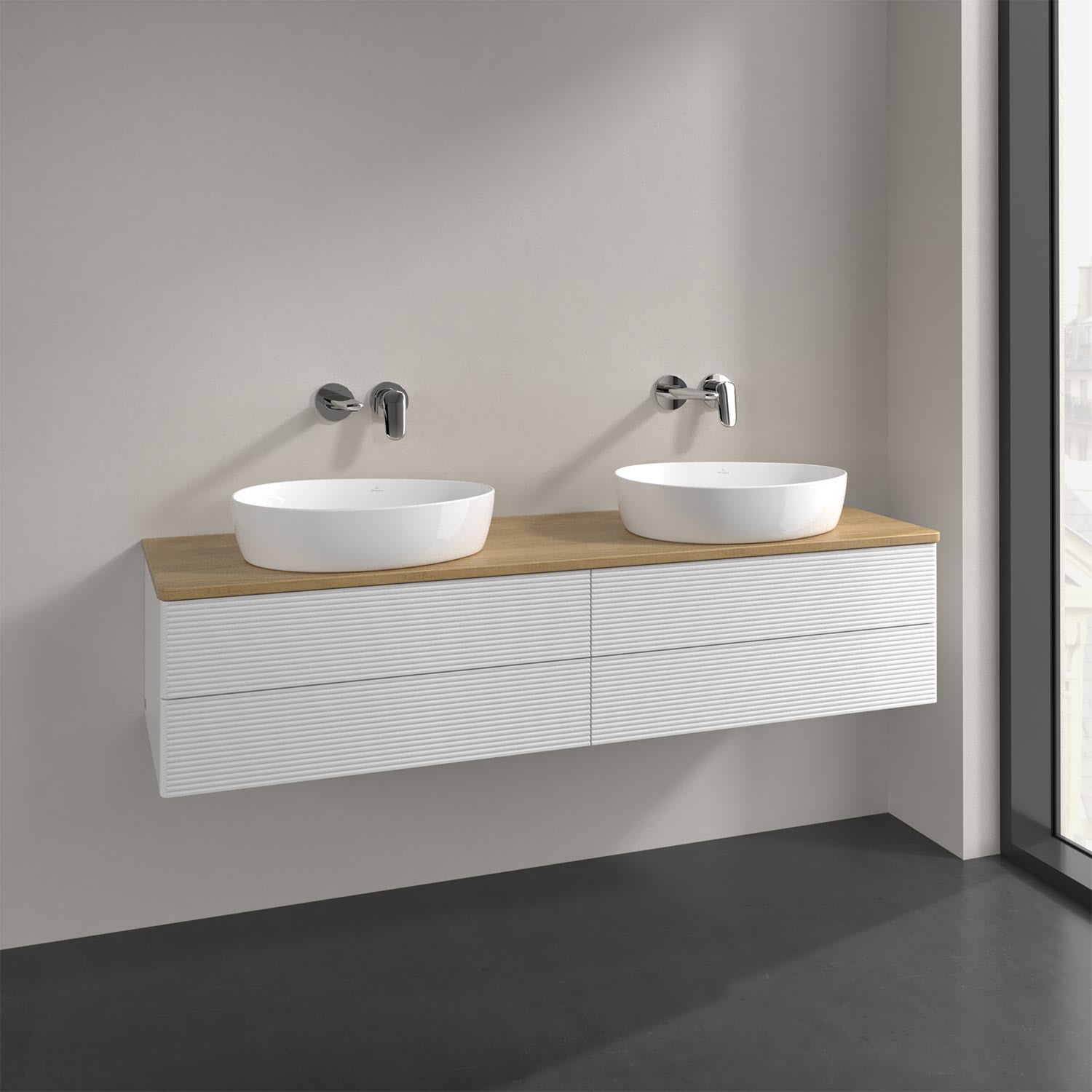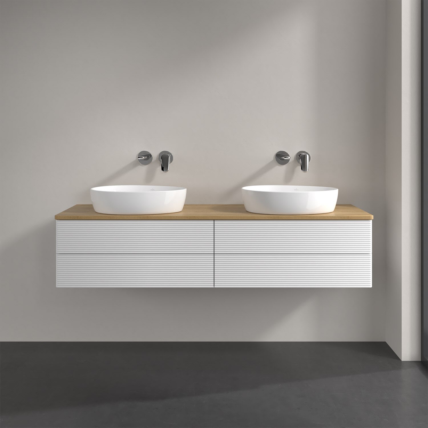 Villeroy & Boch Antao Waschbeckenunterschrank, 160 x 19 cm, 4 Auszüge, Fronten mit Struktur, ohne Hahnloch, für Waschtisch links und rechts
