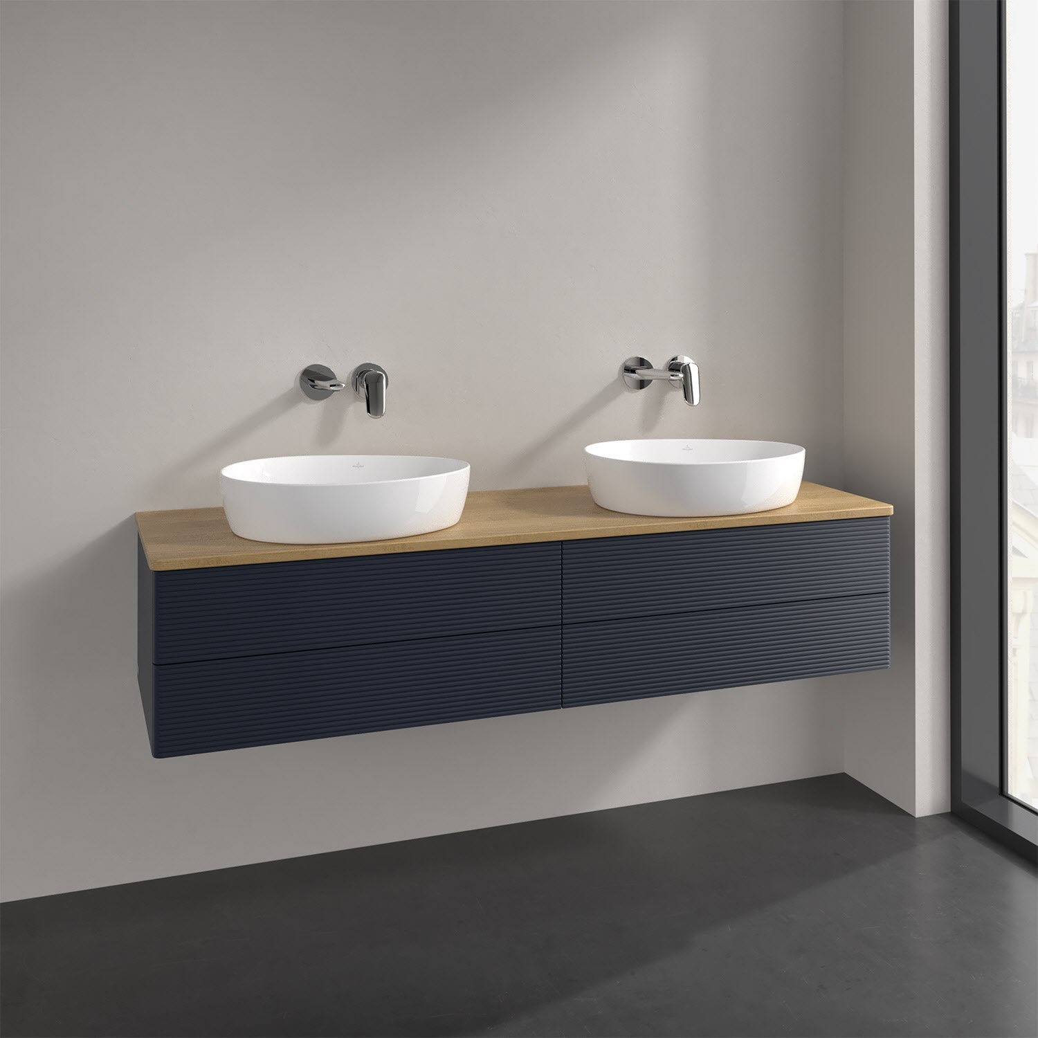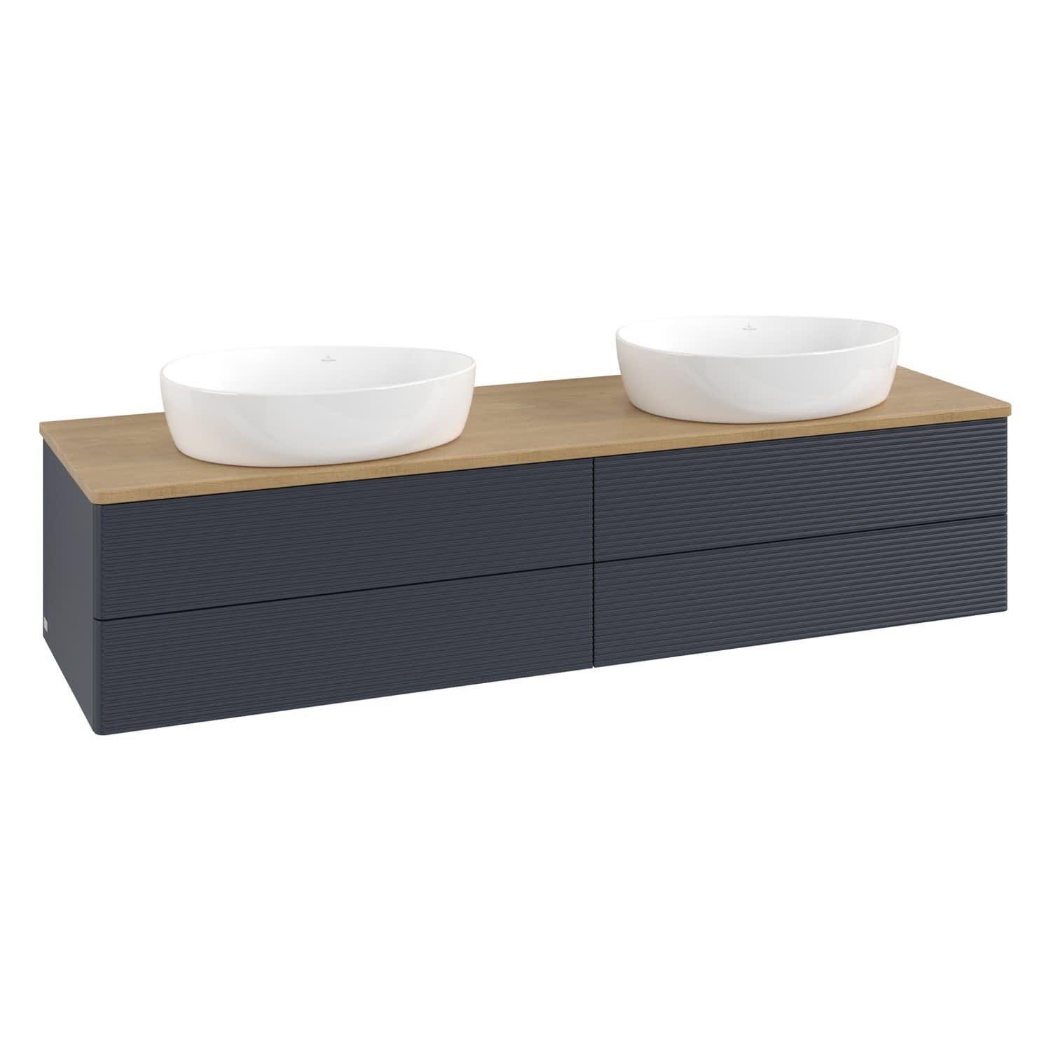 Villeroy & Boch Antao Waschbeckenunterschrank, 160 x 19 cm, 4 Auszüge, Fronten mit Struktur, ohne Hahnloch, für Waschtisch links und rechts