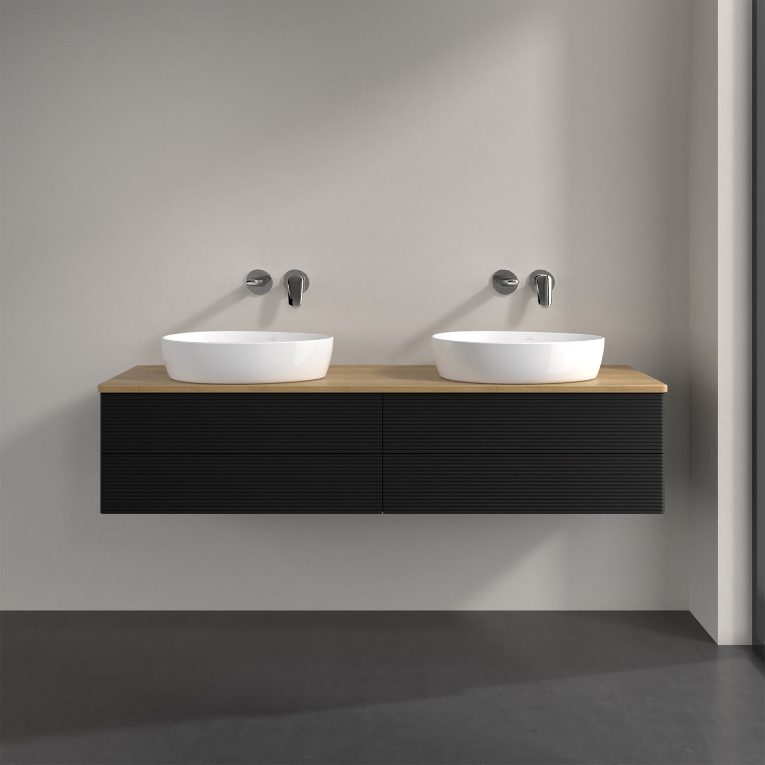 Villeroy & Boch Antao Waschbeckenunterschrank, 160 x 19 cm, 4 Auszüge, Fronten mit Struktur, ohne Hahnloch, für Waschtisch links und rechts