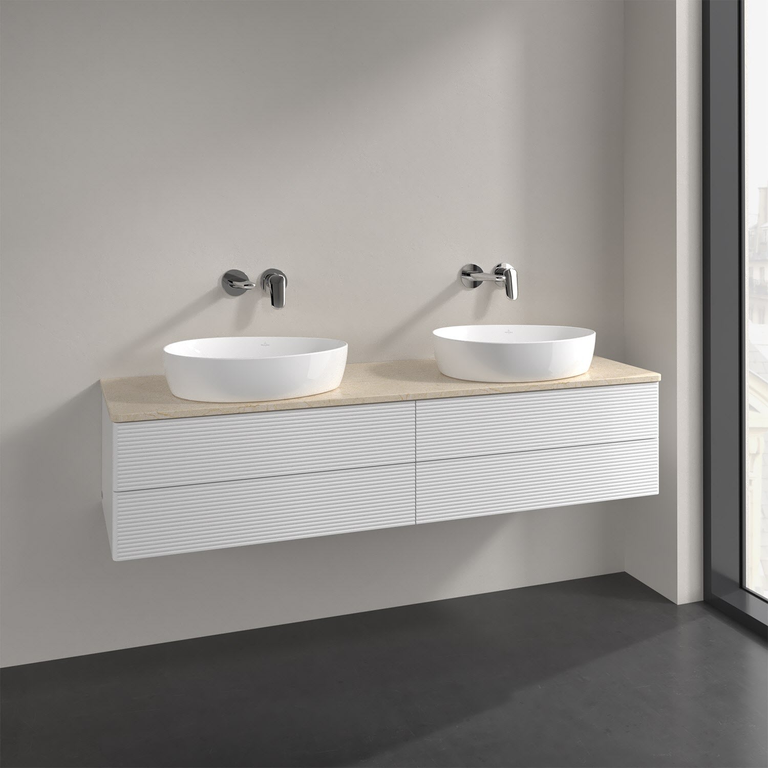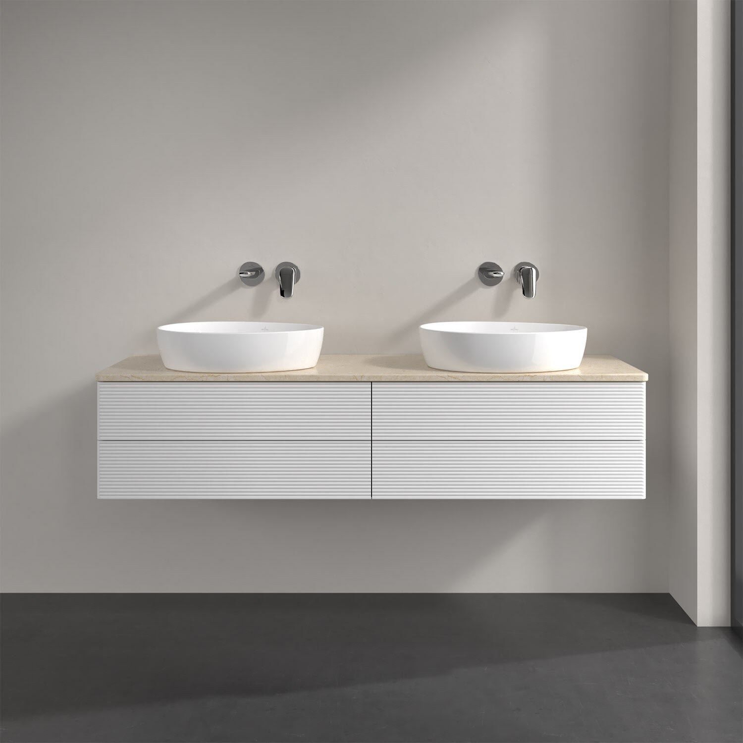 Villeroy & Boch Antao Waschbeckenunterschrank, 160 x 19 cm, 4 Auszüge, Fronten mit Struktur, ohne Hahnloch, für Waschtisch links und rechts
