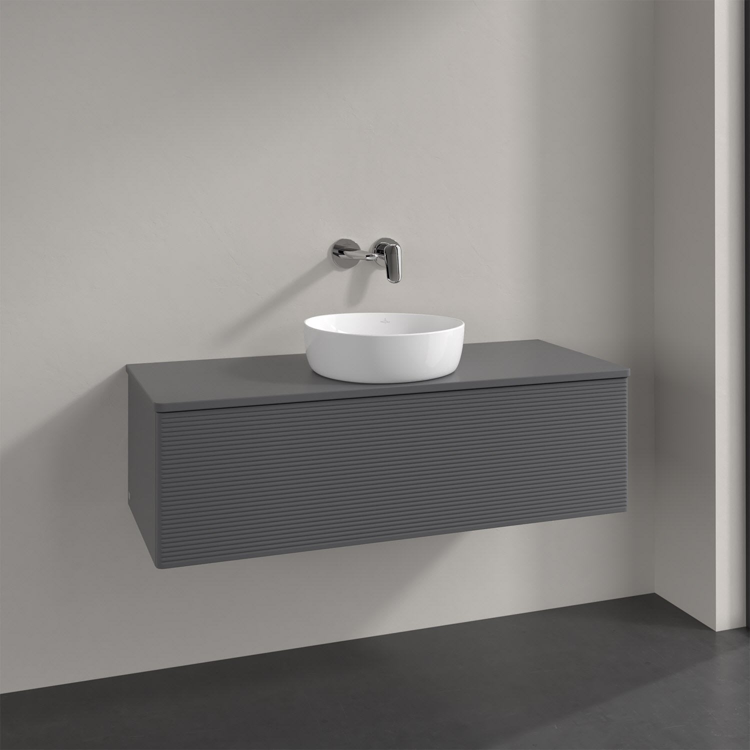 Villeroy & Boch Antao Waschbeckenunterschrank, 120 x 36 cm, 1 Auszug, Front mit Struktur, ohne Hahnloch, für Waschtisch mittig