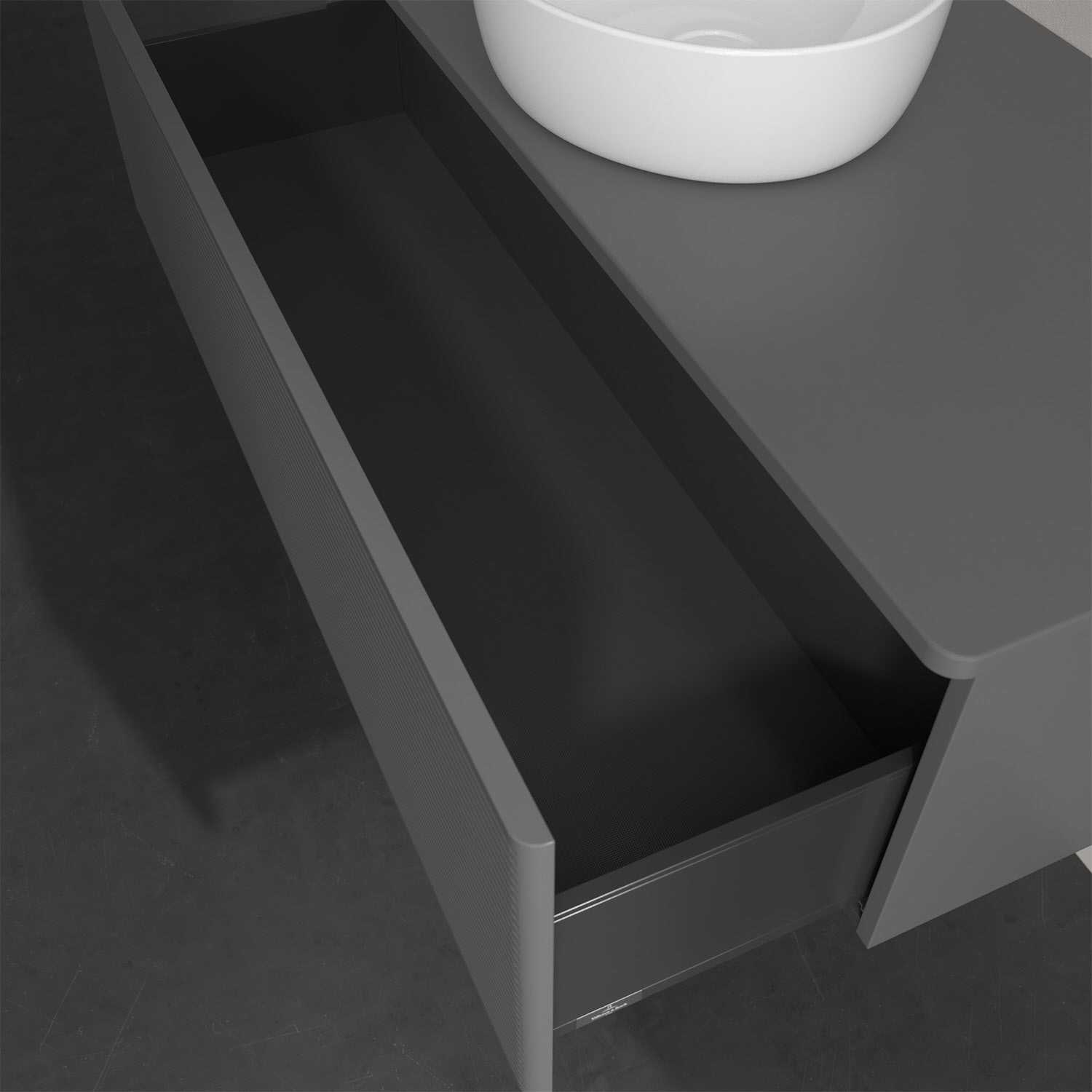 Der wandhängende Antao Waschtischunterschrank von Villeroy & Boch bietet nicht nur jede Menge Stauraum – er ist dank seines naturinspirierten Designs mit seinen abgerundeten Kanten auch noch besonders stilvoll und schafft eine gemütliche Atmosphäre im Badezimmer. Auf der Waschtischplatte bietet sich rechts und links neben dem Waschtisch viel Platz für Zahnbürstenbecher oder Seifenspender. Ein extra hoher Auszug bietet viel Platz, um alles Notwendige zu verstauen und Ordnung zu halten. Öffnen lässt er sich durch leichten Druck auf die strukturierte Front. Dank Vollauszug hat man immer alles im Blick und der Antirutschboden verhindert ein Umfallen oder Verrutschen der Gegenstände. Einfach clever! Für eine besonders leichte Pflege sorgt die mehrschichtig deckend lackierte Oberfläche.