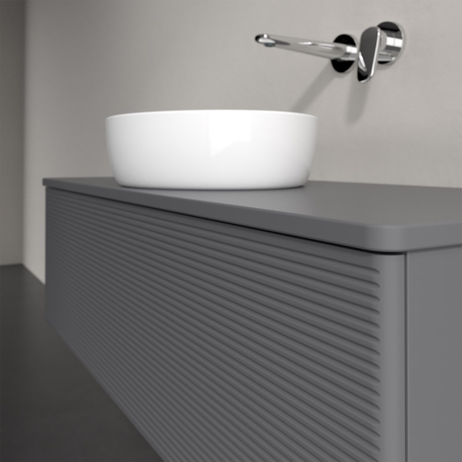 Der wandhängende Antao Waschtischunterschrank von Villeroy & Boch bietet nicht nur jede Menge Stauraum – er ist dank seines naturinspirierten Designs mit seinen abgerundeten Kanten auch noch besonders stilvoll und schafft eine gemütliche Atmosphäre im Badezimmer. Auf der Waschtischplatte bietet sich rechts und links neben dem Waschtisch viel Platz für Zahnbürstenbecher oder Seifenspender. Ein extra hoher Auszug bietet viel Platz, um alles Notwendige zu verstauen und Ordnung zu halten. Öffnen lässt er sich durch leichten Druck auf die strukturierte Front. Dank Vollauszug hat man immer alles im Blick und der Antirutschboden verhindert ein Umfallen oder Verrutschen der Gegenstände. Einfach clever! Für eine besonders leichte Pflege sorgt die mehrschichtig deckend lackierte Oberfläche.