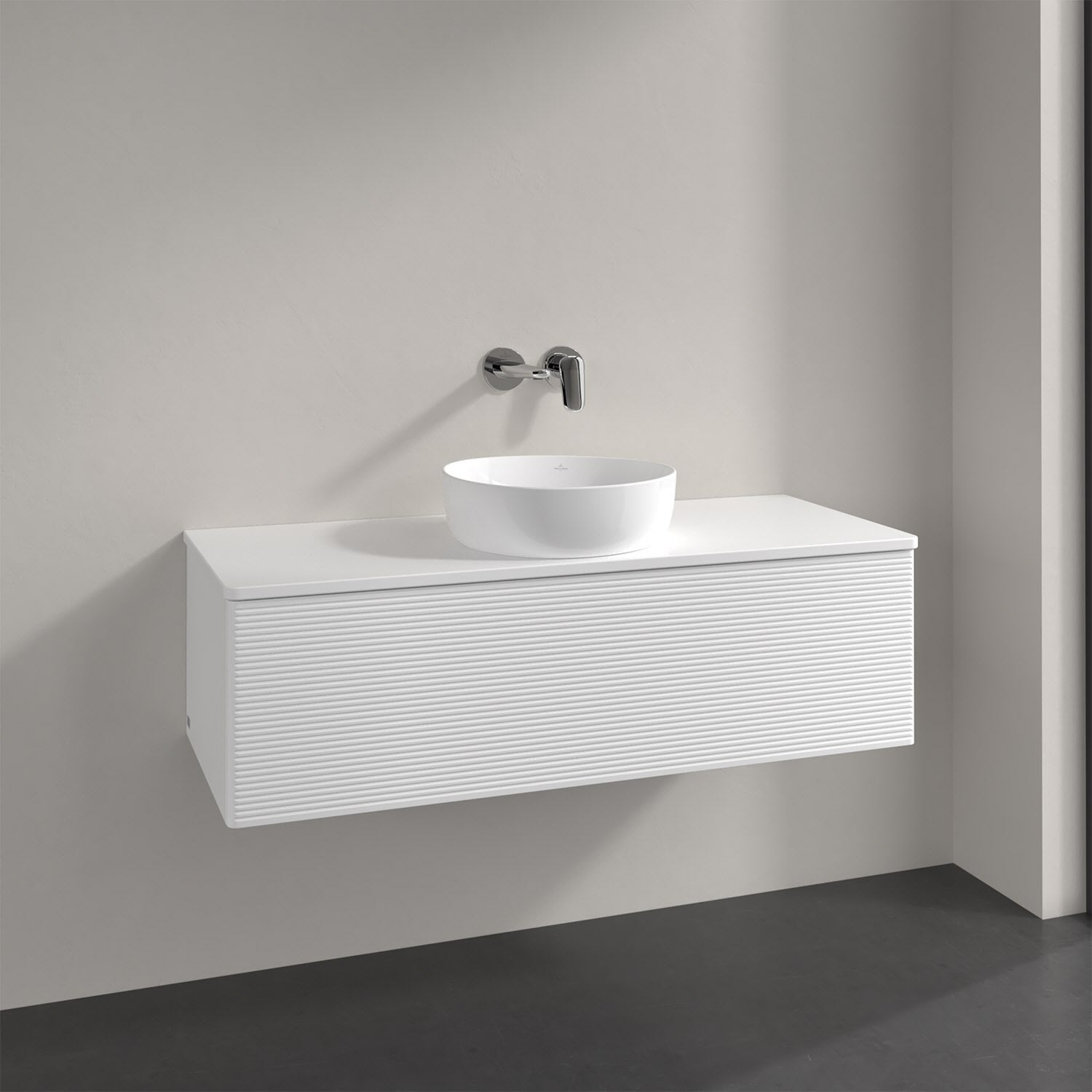 Villeroy & Boch Antao Waschbeckenunterschrank, 120 x 36 cm, 1 Auszug, Front mit Struktur, ohne Hahnloch, für Waschtisch mittig