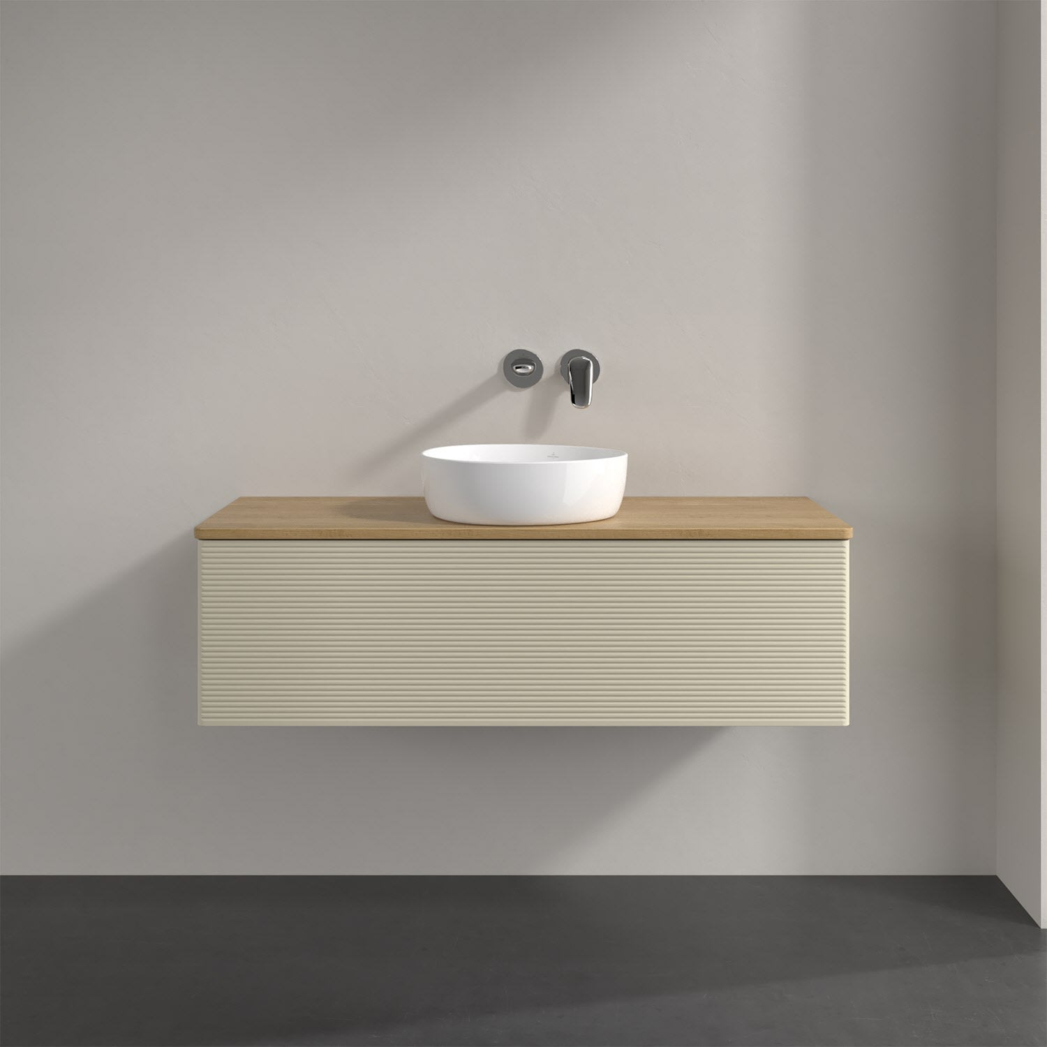 Villeroy & Boch Antao Waschbeckenunterschrank, 120 x 36 cm, 1 Auszug, Front mit Struktur, ohne Hahnloch, für Waschtisch mittig