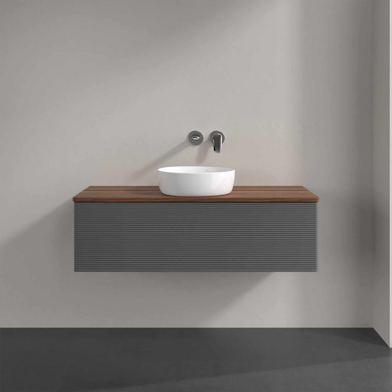 Villeroy & Boch Antao Waschbeckenunterschrank, 120 x 36 cm, 1 Auszug, Front mit Struktur, ohne Hahnloch, für Waschtisch mittig