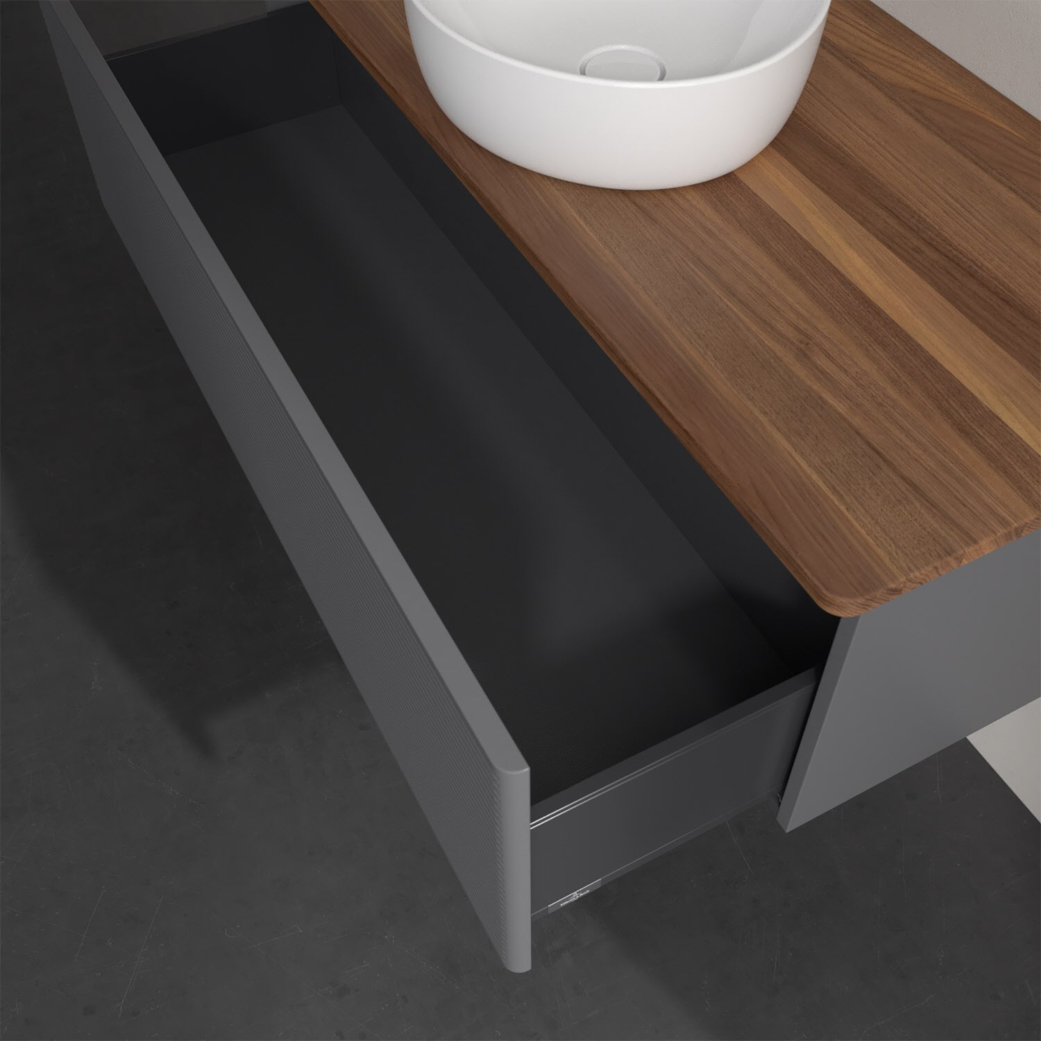 - kein Umfallen oder Verrutschen von Pflegeprodukten in den Schubladen dank rutschhemmendem Boden