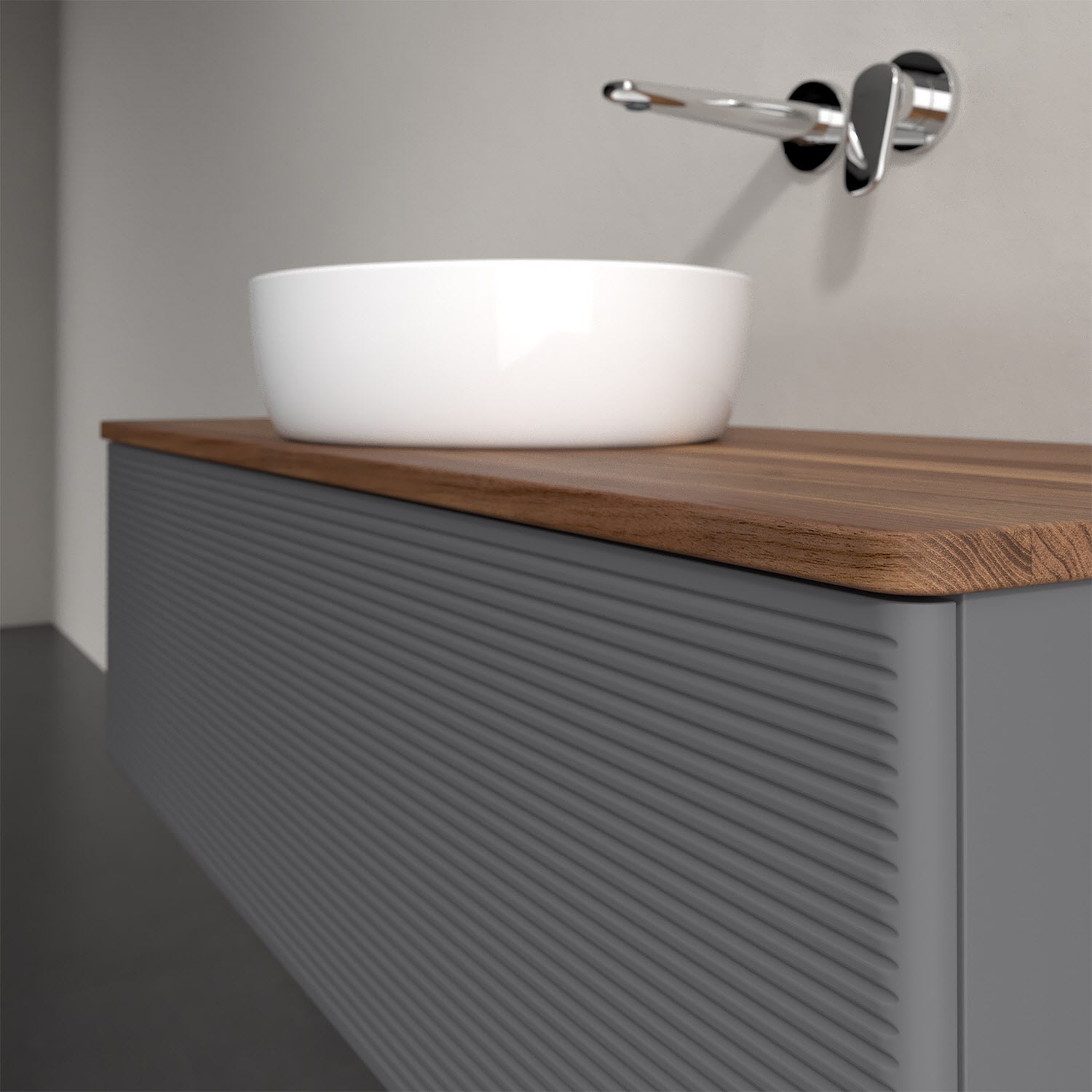 Der wandhängende Antao Waschtischunterschrank von Villeroy & Boch bietet nicht nur jede Menge Stauraum – er ist dank seines naturinspirierten Designs mit seinen abgerundeten Kanten auch noch besonders stilvoll und schafft eine gemütliche Atmosphäre im Badezimmer. Auf der Waschtischplatte bietet sich rechts und links neben dem Waschtisch viel Platz für Zahnbürstenbecher oder Seifenspender. Ein extra hoher Auszug bietet viel Platz, um alles Notwendige zu verstauen und Ordnung zu halten. Öffnen lässt er sich durch leichten Druck auf die strukturierte Front. Dank Vollauszug hat man immer alles im Blick und der Antirutschboden verhindert ein Umfallen oder Verrutschen der Gegenstände. Einfach clever! Für eine besonders leichte Pflege sorgt die mehrschichtig deckend lackierte Oberfläche. Bei der Ausführung in Massivholz wird dank des verarbeiteten Massivholzes jedes Möbel zu einem Unikat, das sich durch das lebendige Naturmaterial durch seine einzigartige Struktur und Maserung auszeichnet.