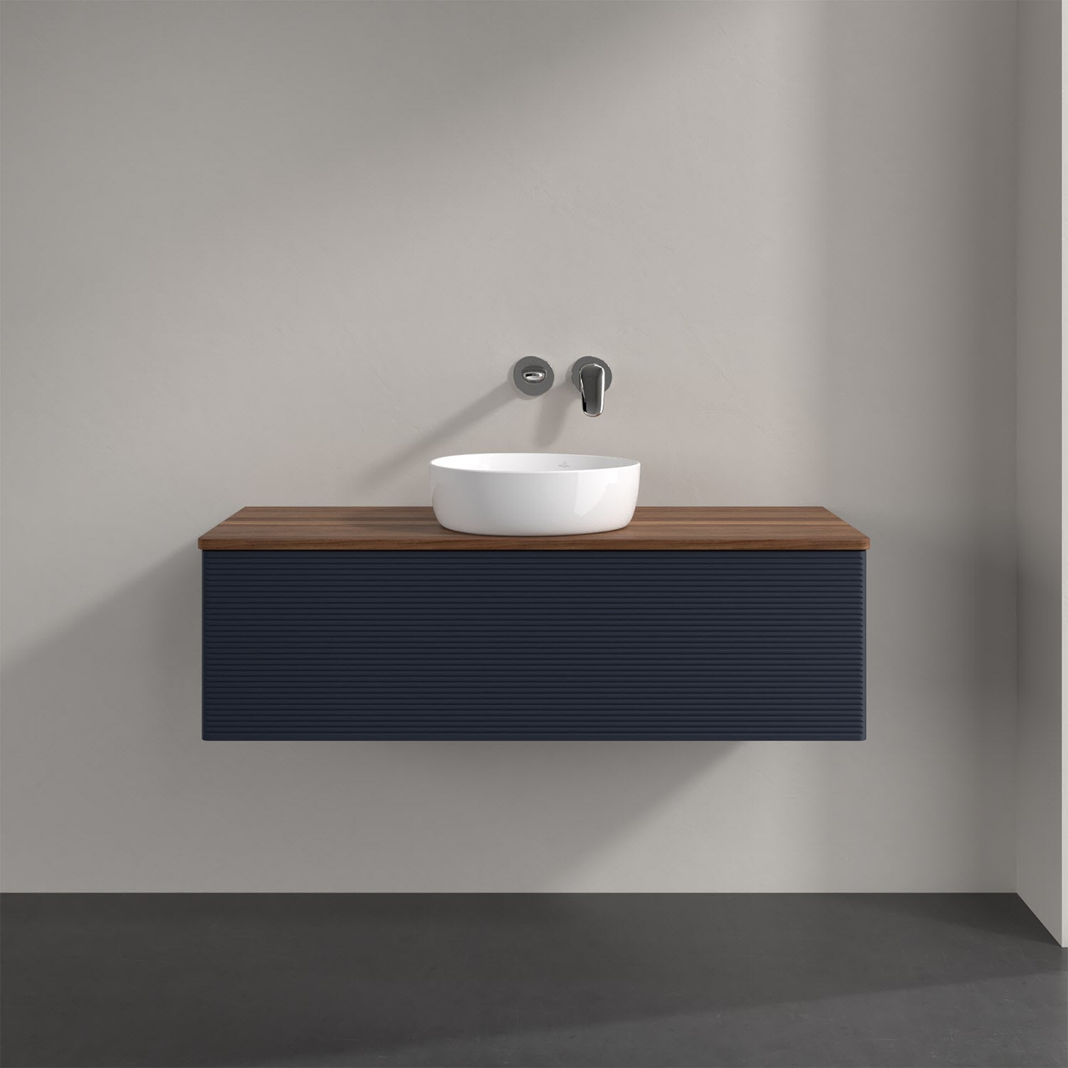 Villeroy & Boch Antao Waschbeckenunterschrank, 120 x 36 cm, 1 Auszug, Front mit Struktur, ohne Hahnloch, für Waschtisch mittig