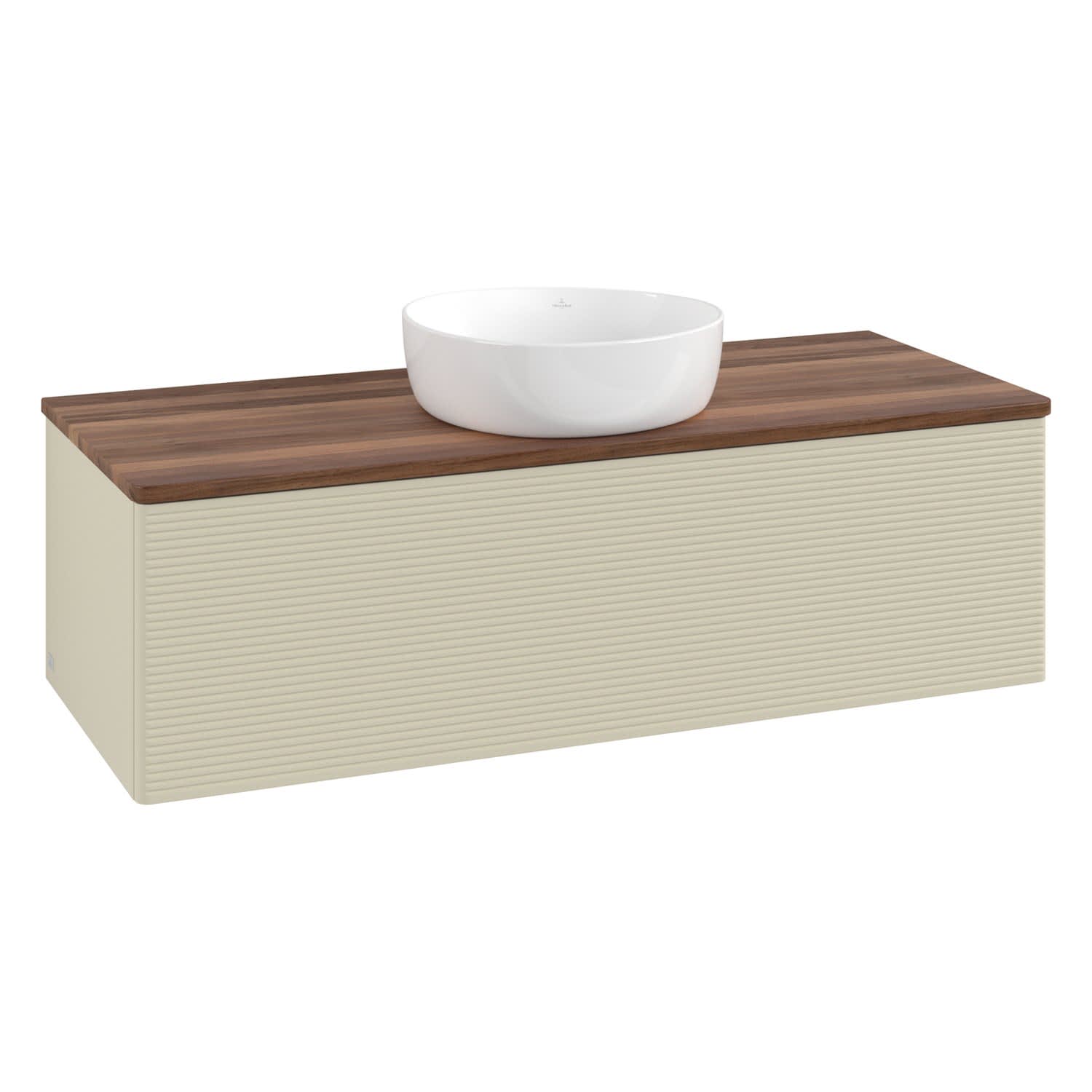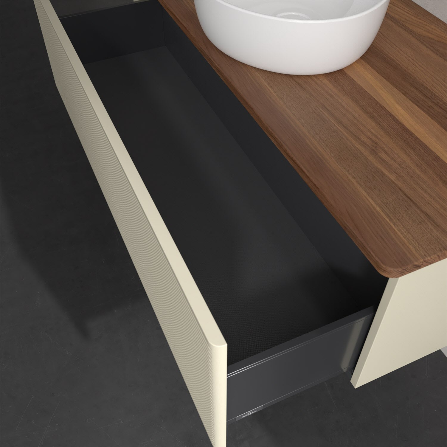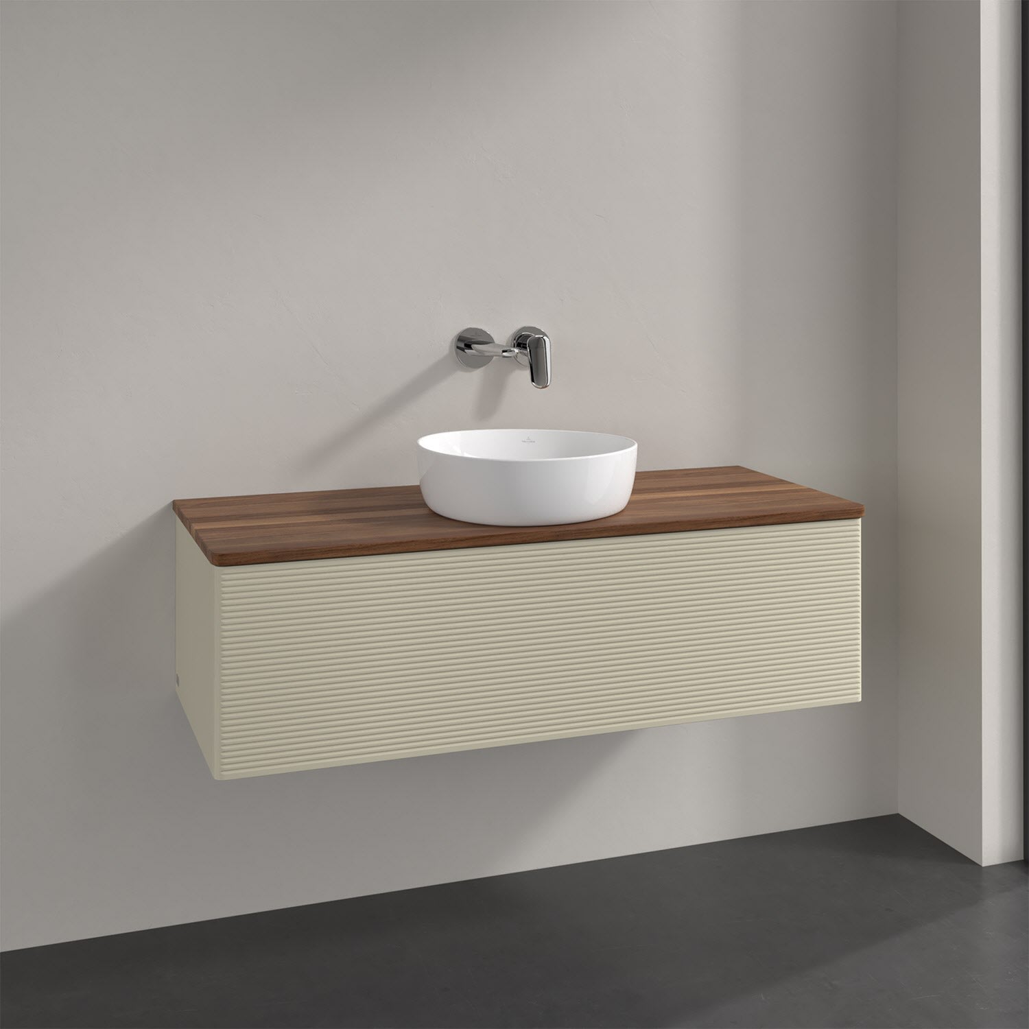 Villeroy & Boch Antao Waschbeckenunterschrank, 120 x 36 cm, 1 Auszug, Front mit Struktur, ohne Hahnloch, für Waschtisch mittig