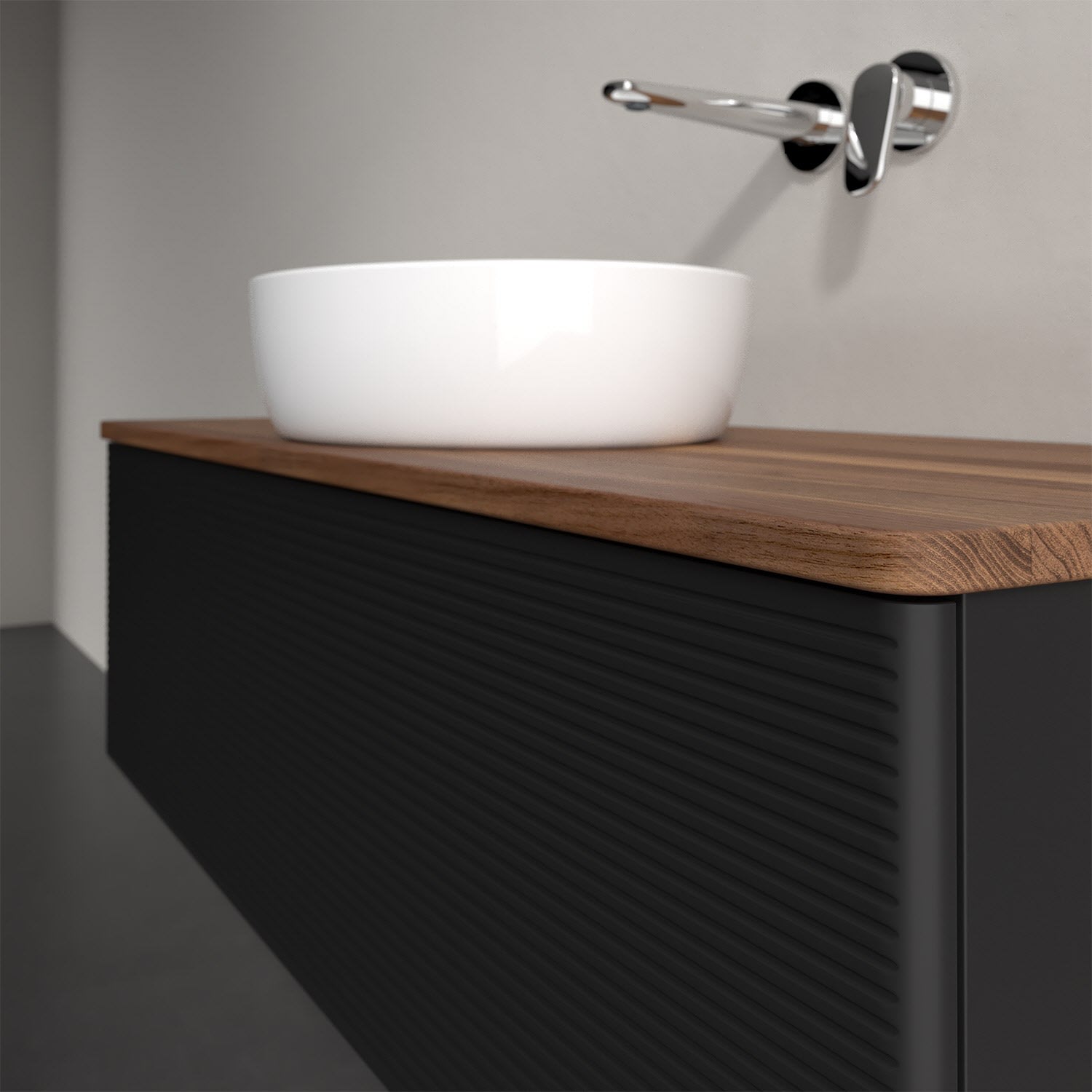 Der wandhängende Antao Waschtischunterschrank von Villeroy & Boch bietet nicht nur jede Menge Stauraum – er ist dank seines naturinspirierten Designs mit seinen abgerundeten Kanten auch noch besonders stilvoll und schafft eine gemütliche Atmosphäre im Badezimmer. Auf der Waschtischplatte bietet sich rechts und links neben dem Waschtisch viel Platz für Zahnbürstenbecher oder Seifenspender. Ein extra hoher Auszug bietet viel Platz, um alles Notwendige zu verstauen und Ordnung zu halten. Öffnen lässt er sich durch leichten Druck auf die strukturierte Front. Dank Vollauszug hat man immer alles im Blick und der Antirutschboden verhindert ein Umfallen oder Verrutschen der Gegenstände. Einfach clever! Für eine besonders leichte Pflege sorgt die mehrschichtig deckend lackierte Oberfläche. Bei der Ausführung in Massivholz wird dank des verarbeiteten Massivholzes jedes Möbel zu einem Unikat, das sich durch das lebendige Naturmaterial durch seine einzigartige Struktur und Maserung auszeichnet.