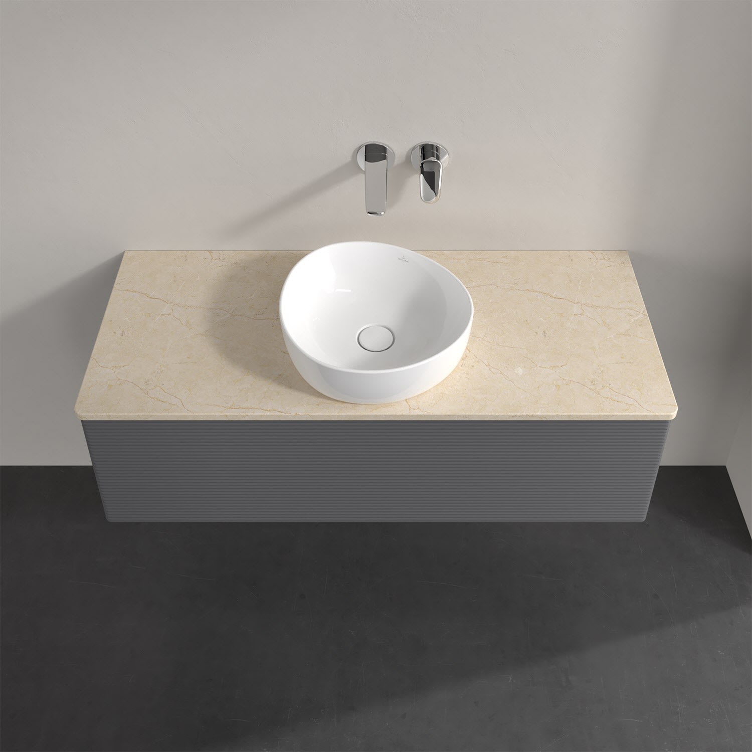 Für diesen Waschbeckenunterschrank stehen Ihnen Aufsatzwaschtische aus verschiedenen Serien zur Verfügung (siehe "Passliste" unter Downloads). Ein ausgewähltes Beispiel finden Sie im Zubehör. Den Waschtisch bitte separat mitbestellen.