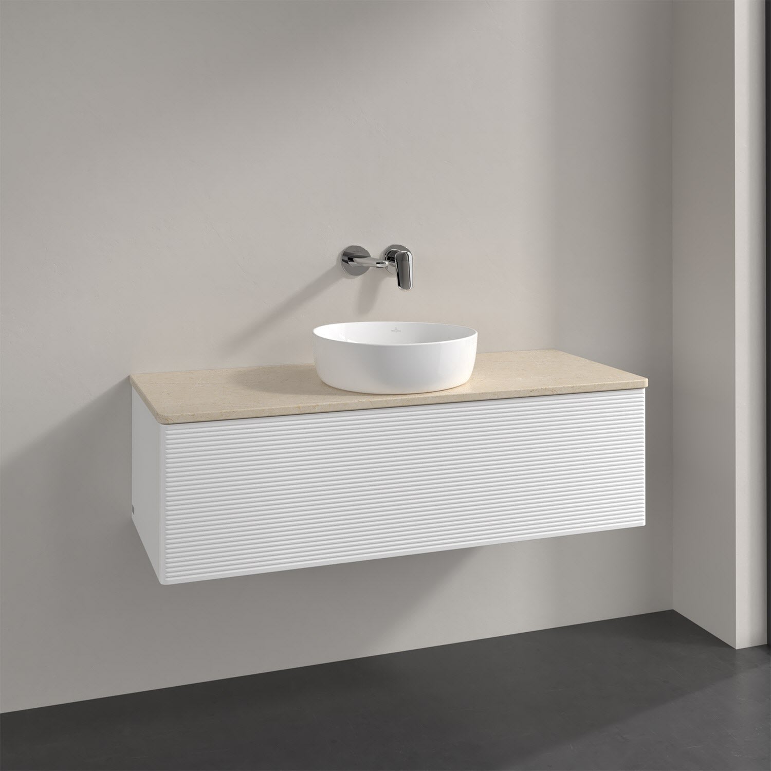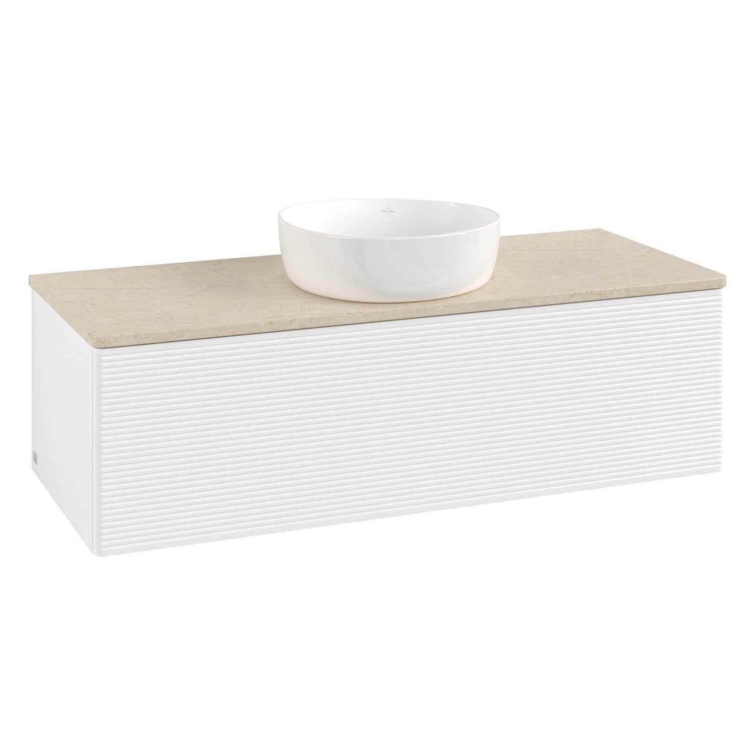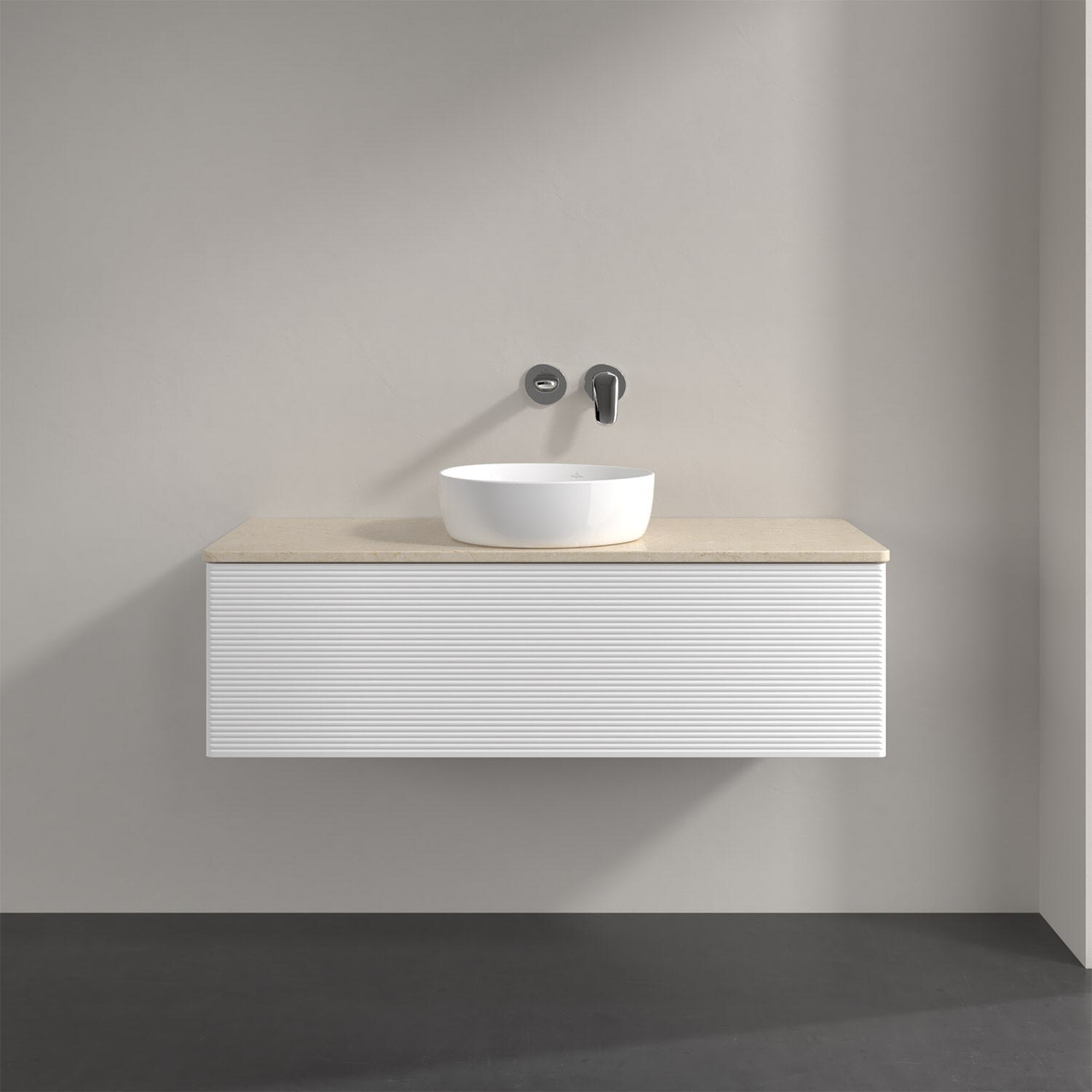 Villeroy & Boch Antao Waschbeckenunterschrank, 120 x 36 cm, 1 Auszug, Front mit Struktur, ohne Hahnloch, für Waschtisch mittig