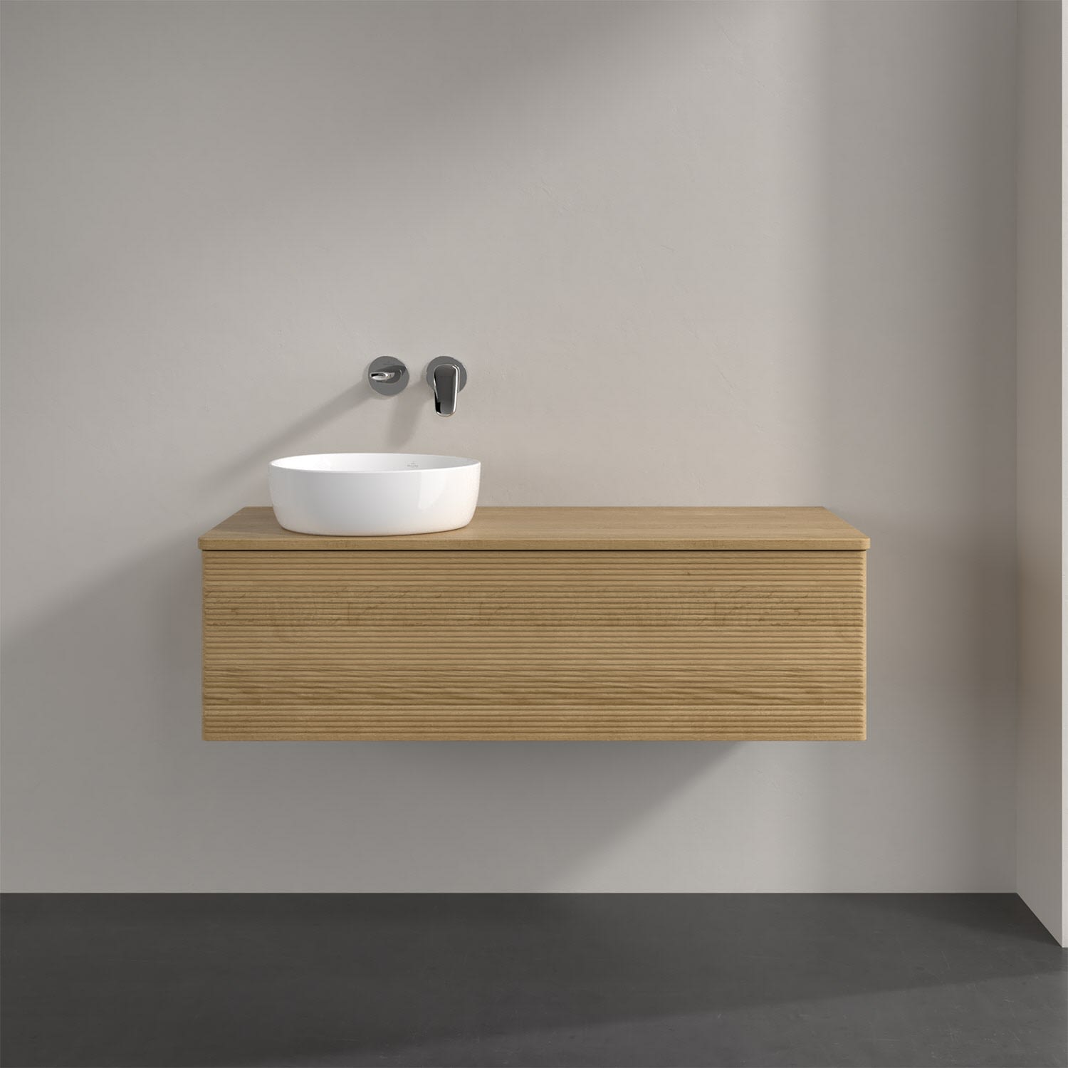 Villeroy & Boch Antao Waschbeckenunterschrank, 120 x 36 cm, 1 Auszug, Front mit Struktur, ohne Hahnloch, für Waschtisch links