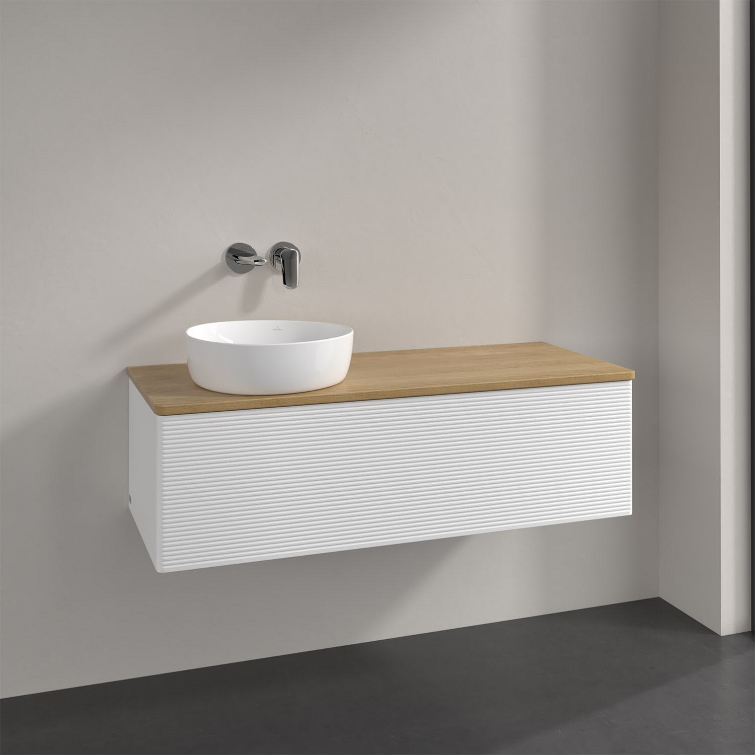 Villeroy & Boch Antao Waschbeckenunterschrank, 120 x 36 cm, 1 Auszug, Front mit Struktur, ohne Hahnloch, für Waschtisch links
