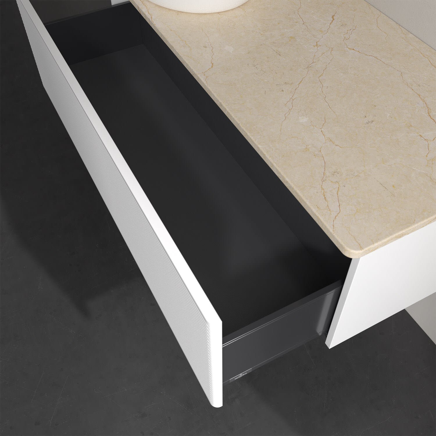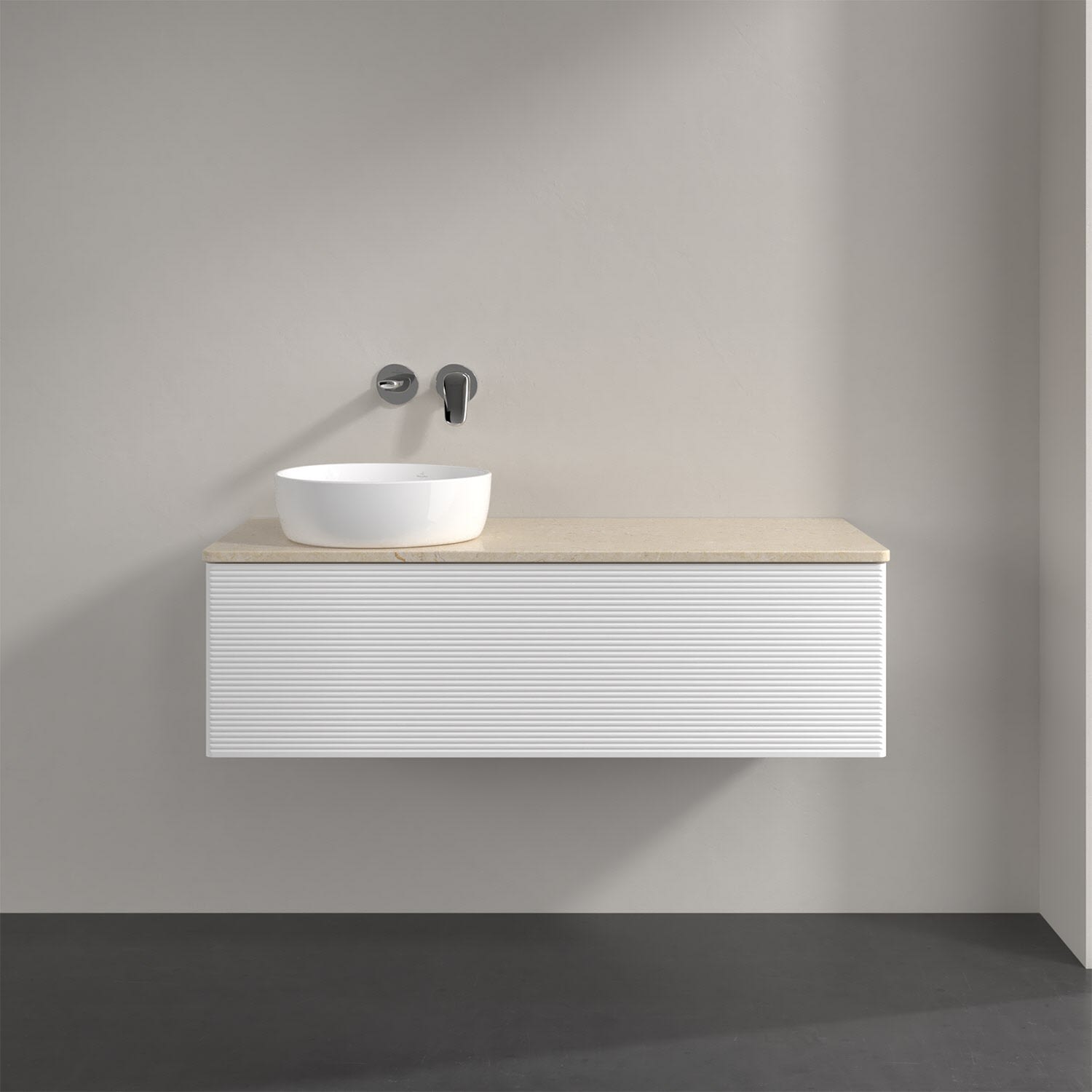 Villeroy & Boch Antao Waschbeckenunterschrank, 120 x 36 cm, 1 Auszug, Front mit Struktur, ohne Hahnloch, für Waschtisch links