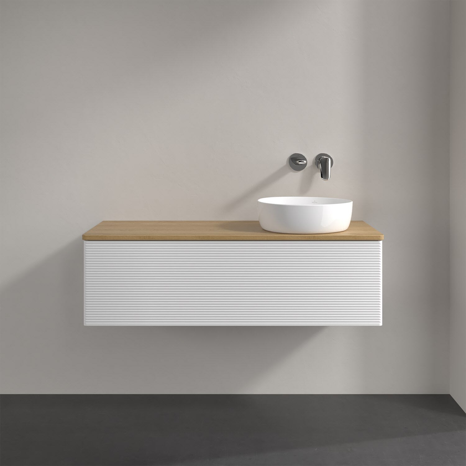 Villeroy & Boch Antao Waschbeckenunterschrank, 120 x 36 cm, 1 Auszug, Front mit Struktur, ohne Hahnloch, für Waschtisch rechts