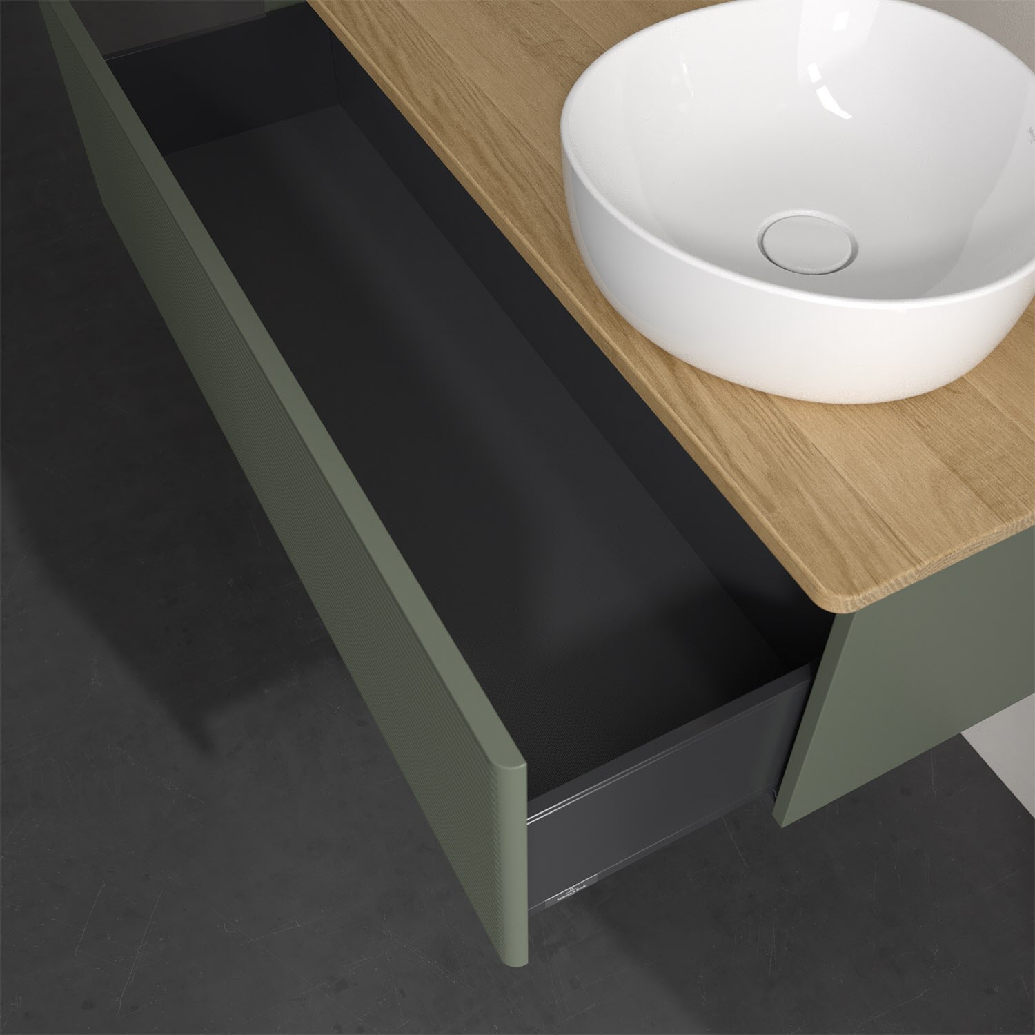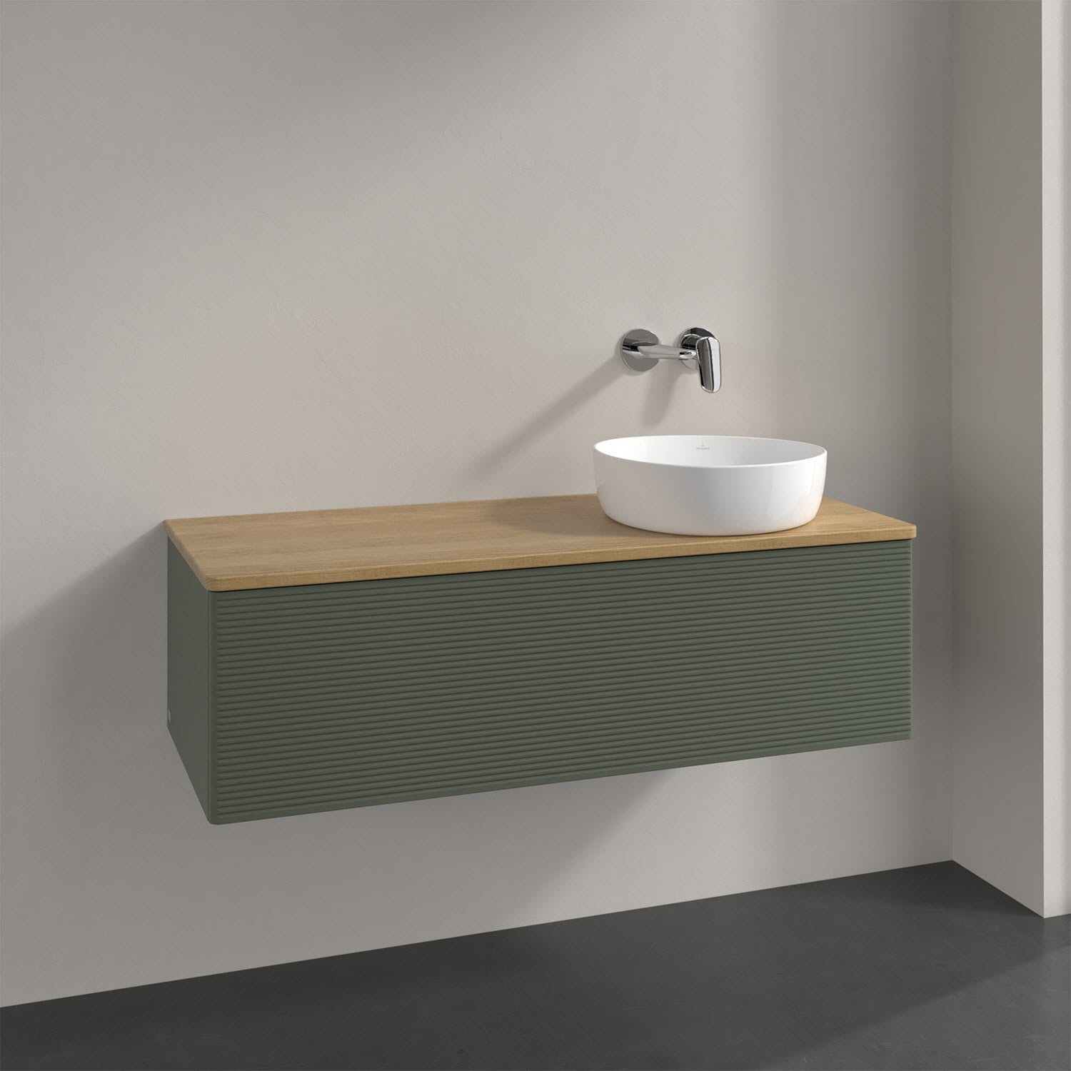 Villeroy & Boch Antao Waschbeckenunterschrank, 120 x 36 cm, 1 Auszug, Front mit Struktur, ohne Hahnloch, für Waschtisch rechts