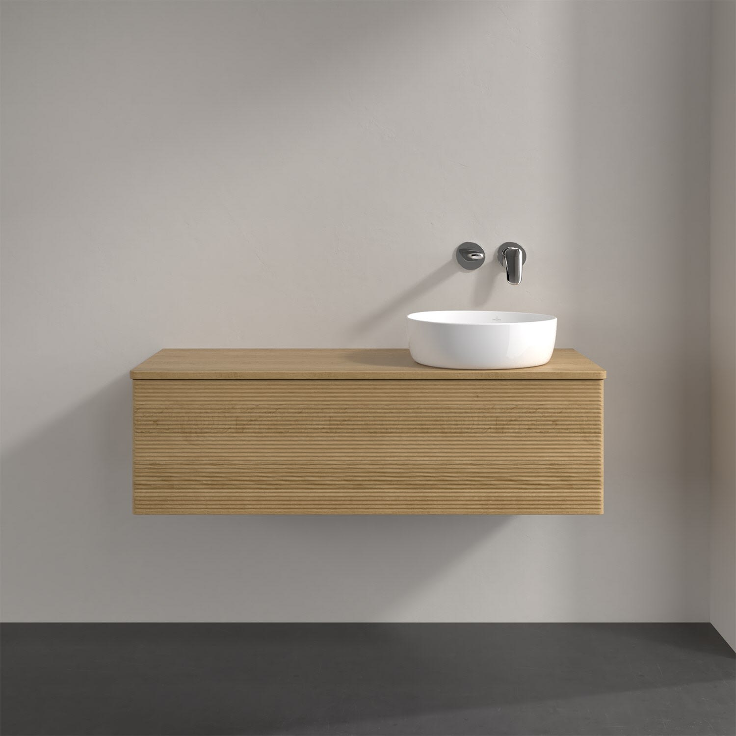 Villeroy & Boch Antao Waschbeckenunterschrank, 120 x 36 cm, 1 Auszug, Front mit Struktur, ohne Hahnloch, für Waschtisch rechts