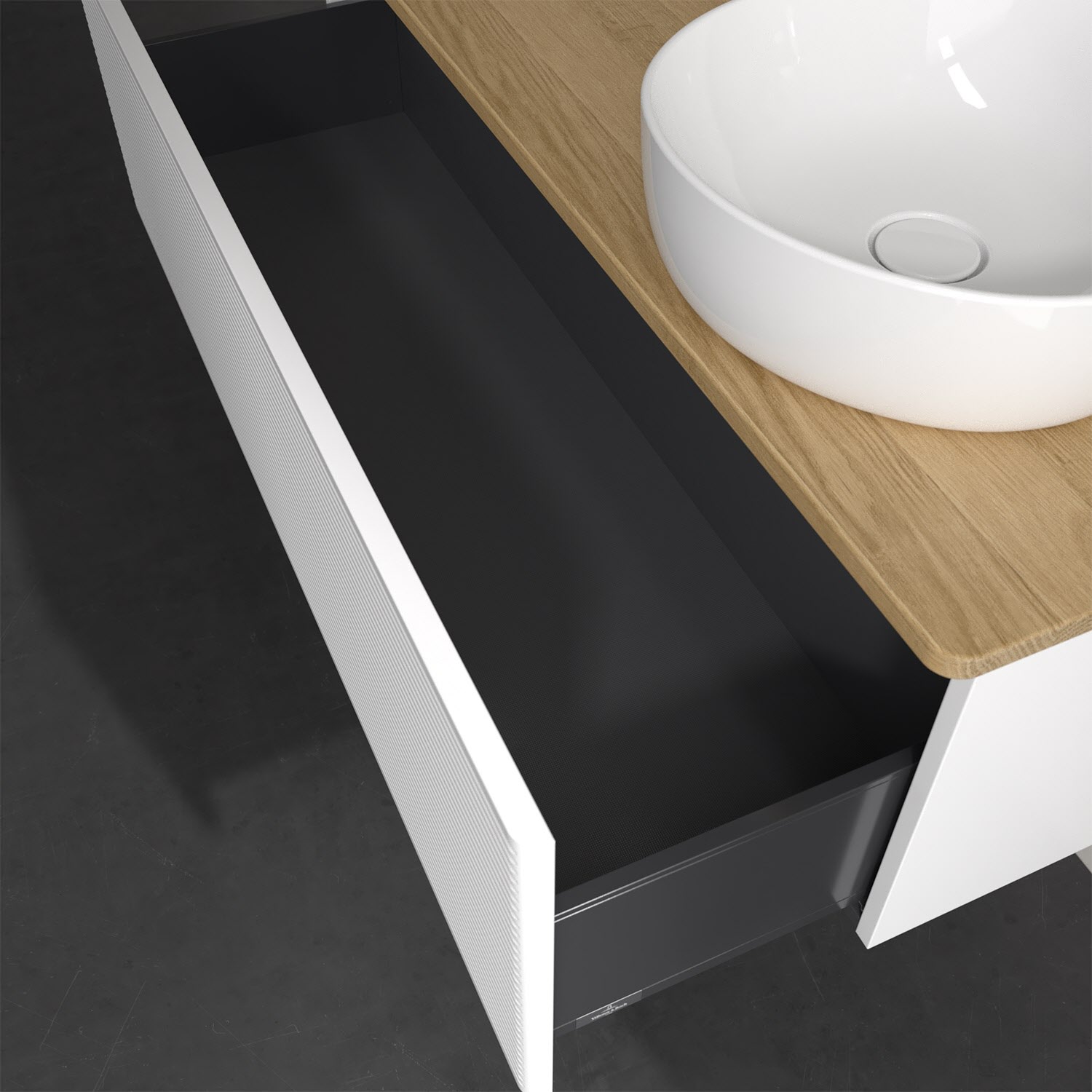 Villeroy & Boch Antao Waschbeckenunterschrank, 120 x 36 cm, 1 Auszug, Front mit Struktur, ohne Hahnloch, für Waschtisch rechts