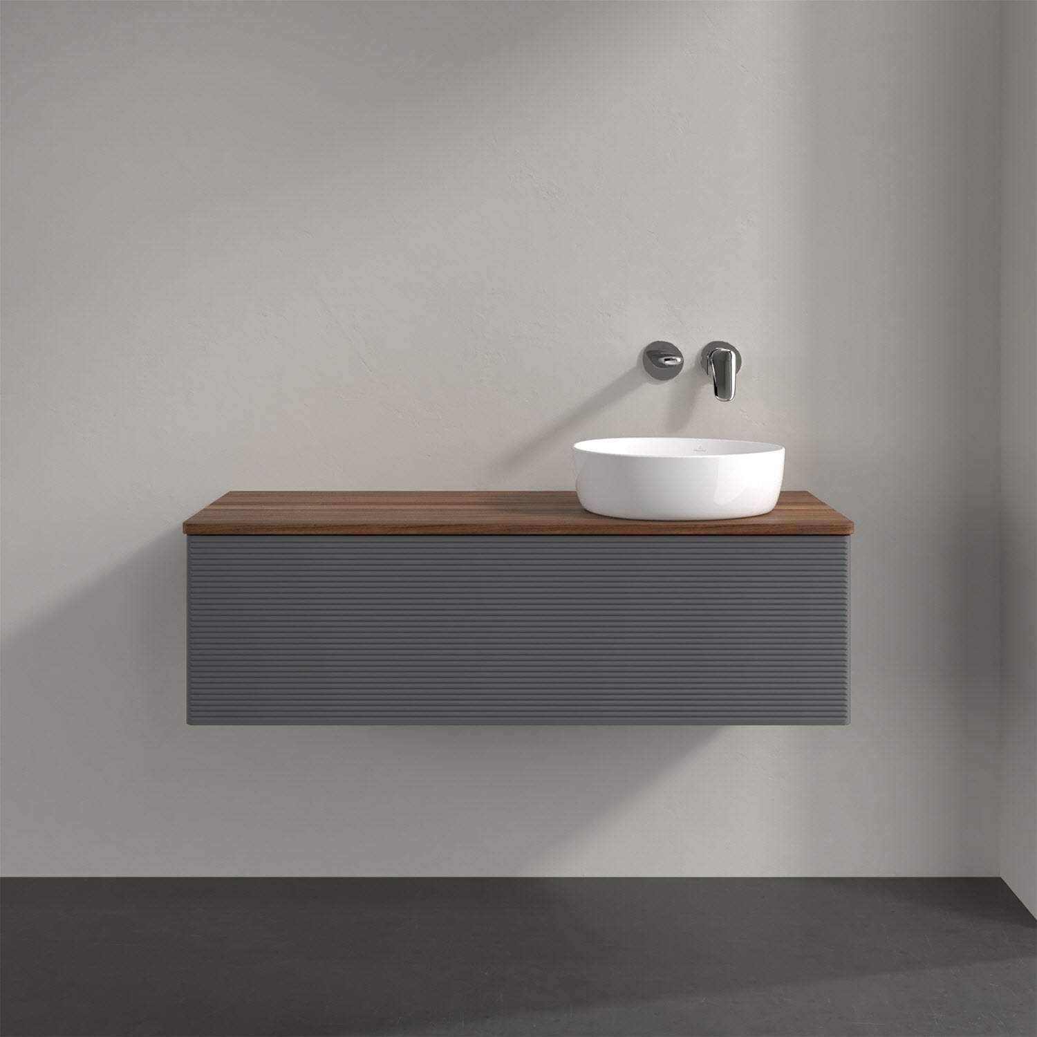 Villeroy & Boch Antao Waschbeckenunterschrank, 120 x 36 cm, 1 Auszug, Front mit Struktur, ohne Hahnloch, für Waschtisch rechts
