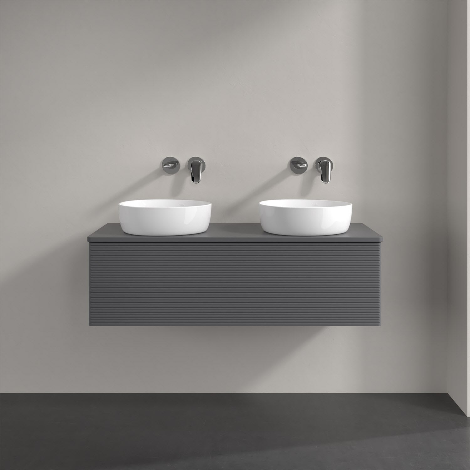 Villeroy & Boch Antao Waschbeckenunterschrank, 120 x 36 cm, 1 Auszug, Front mit Struktur, ohne Hahnloch, für Waschtisch links und rechts