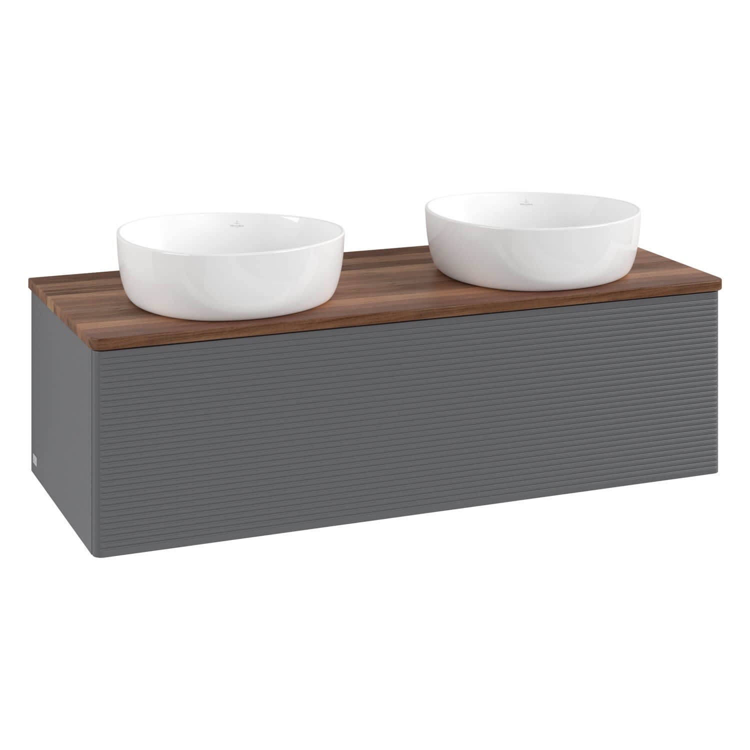 Villeroy & Boch Antao Waschbeckenunterschrank, 120 x 36 cm, 1 Auszug, Front mit Struktur, ohne Hahnloch, für Waschtisch links und rechts