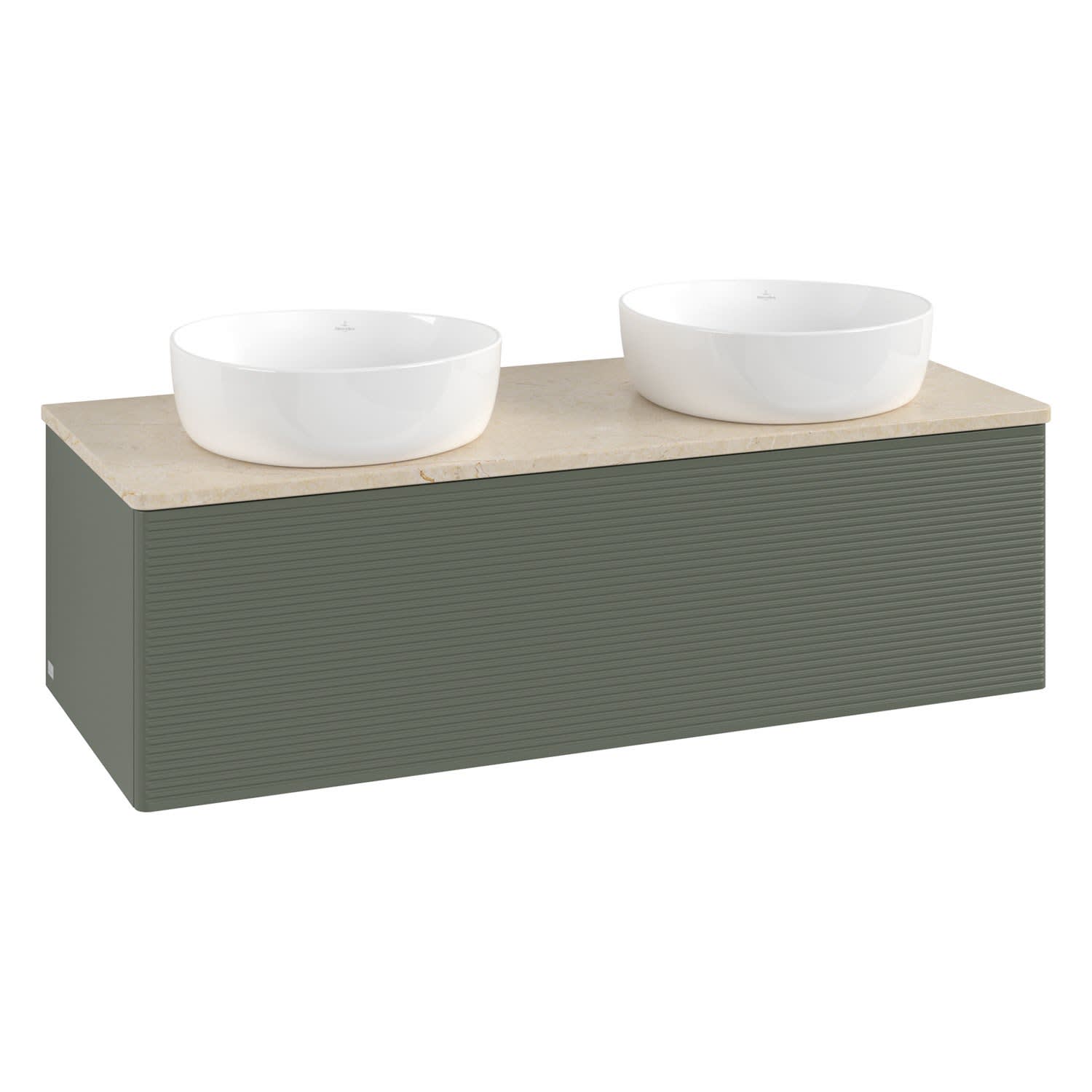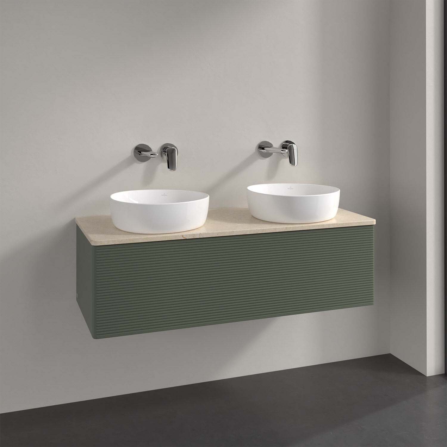 Villeroy & Boch Antao Waschbeckenunterschrank, 120 x 36 cm, 1 Auszug, Front mit Struktur, ohne Hahnloch, für Waschtisch links und rechts